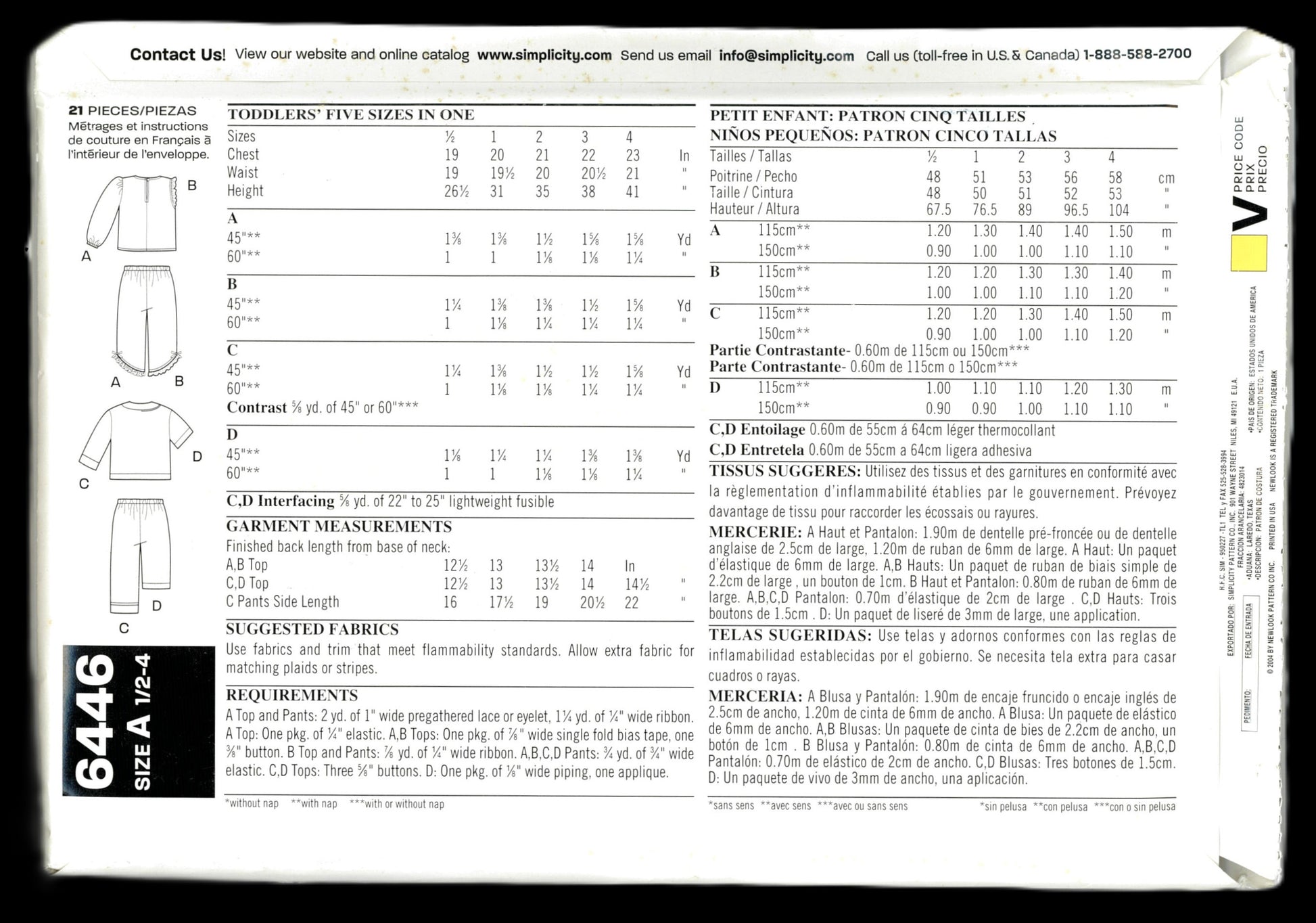 New look 6446 Toddlers Pajama Tops and Pants Sewing Pattern