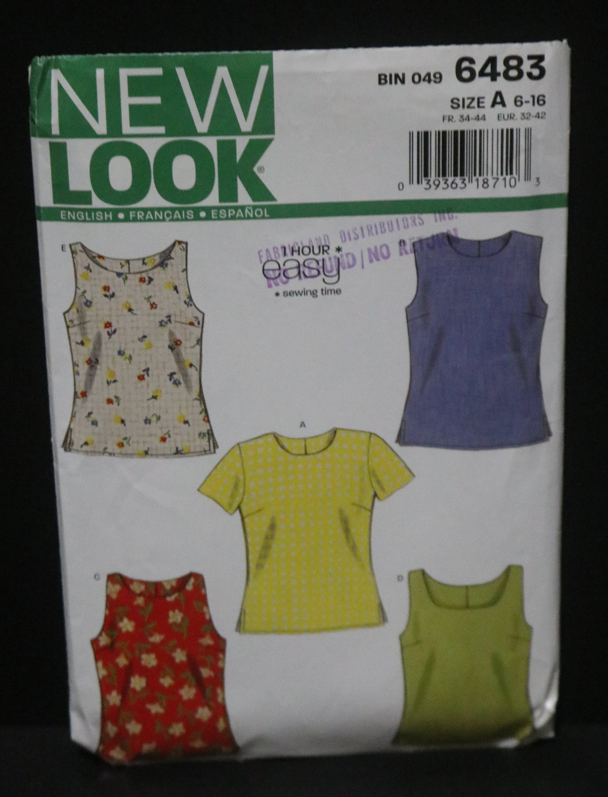 New Look 6483 Misses Tops Sewing Pattern - UNCUT - Size 6 - 16