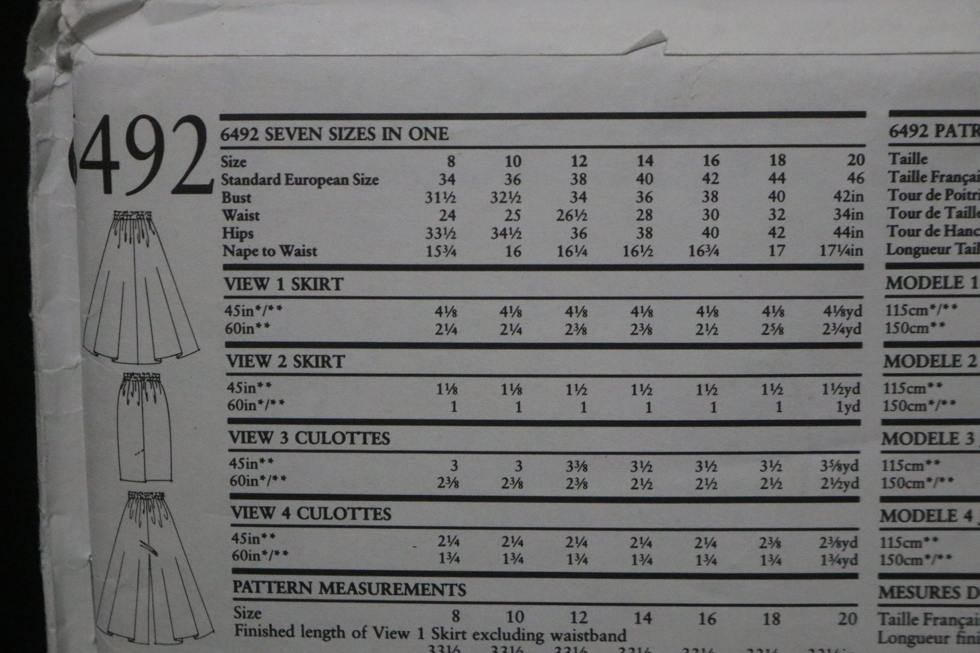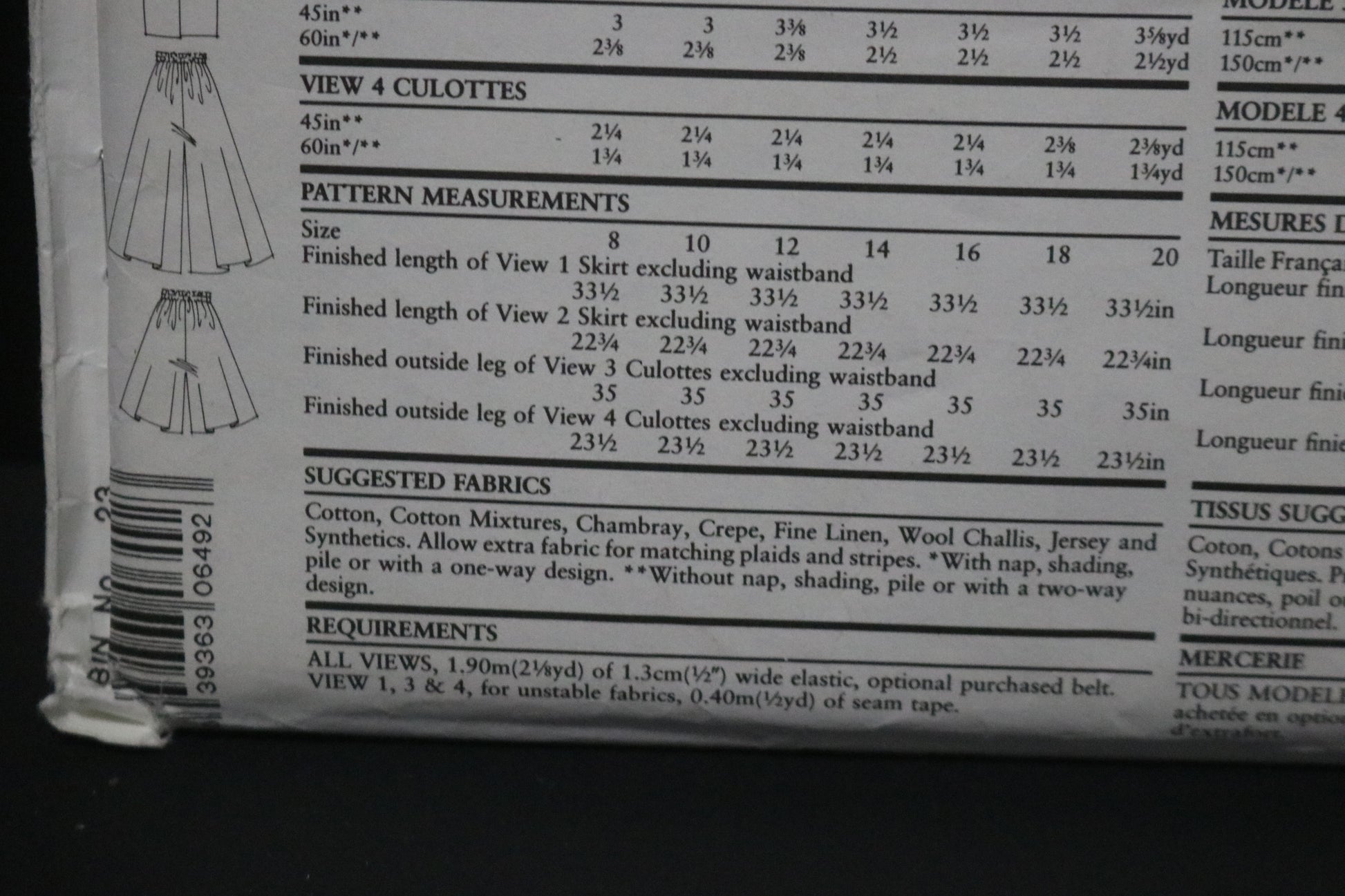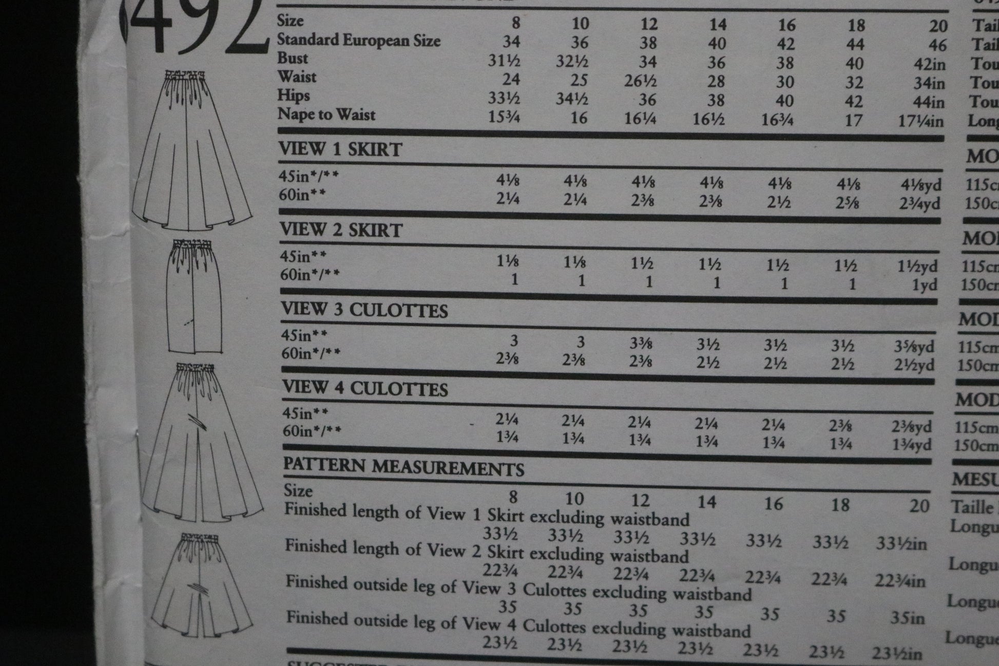 New Look 6492 Misses Skirt and Cullotes Sewing Pattern