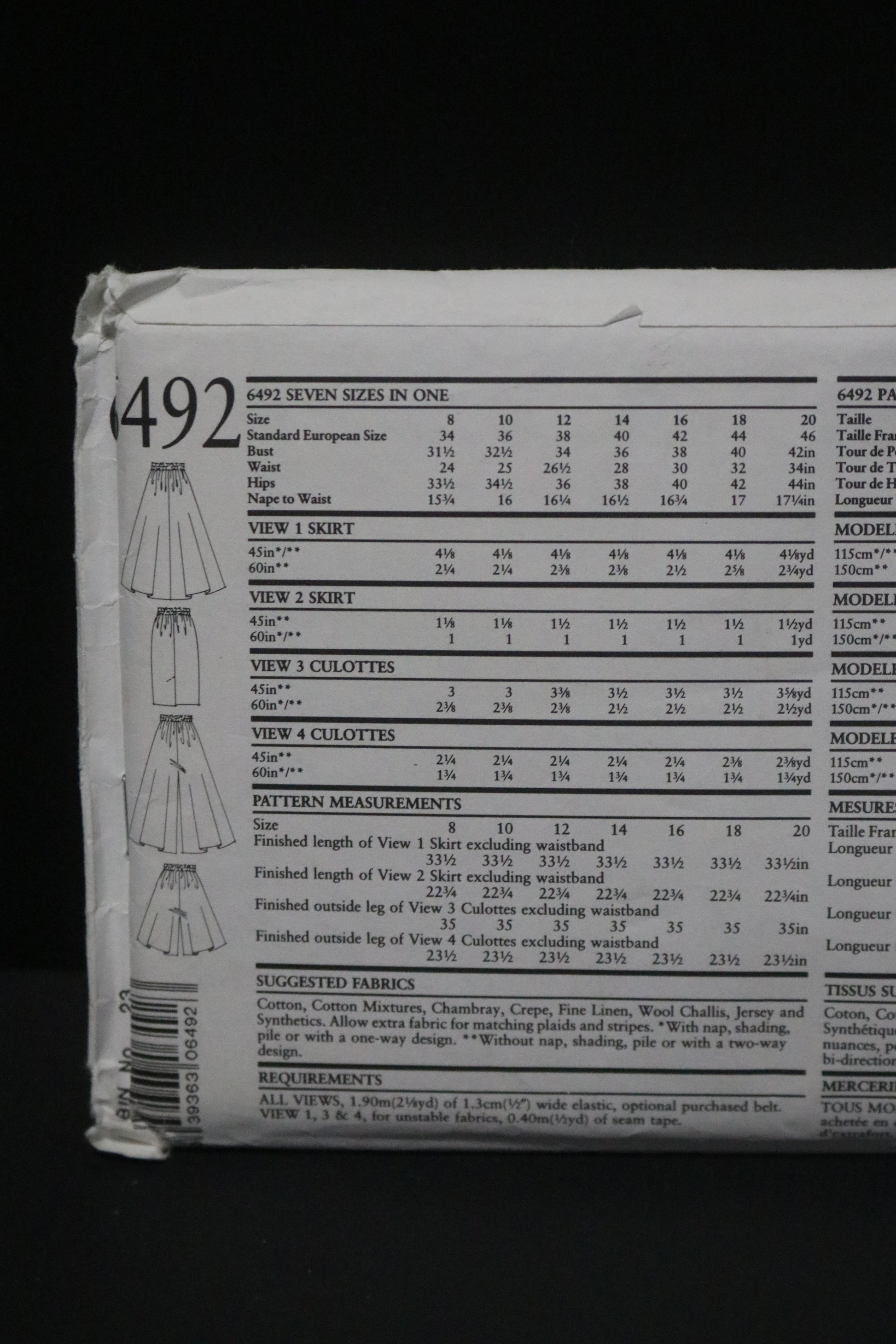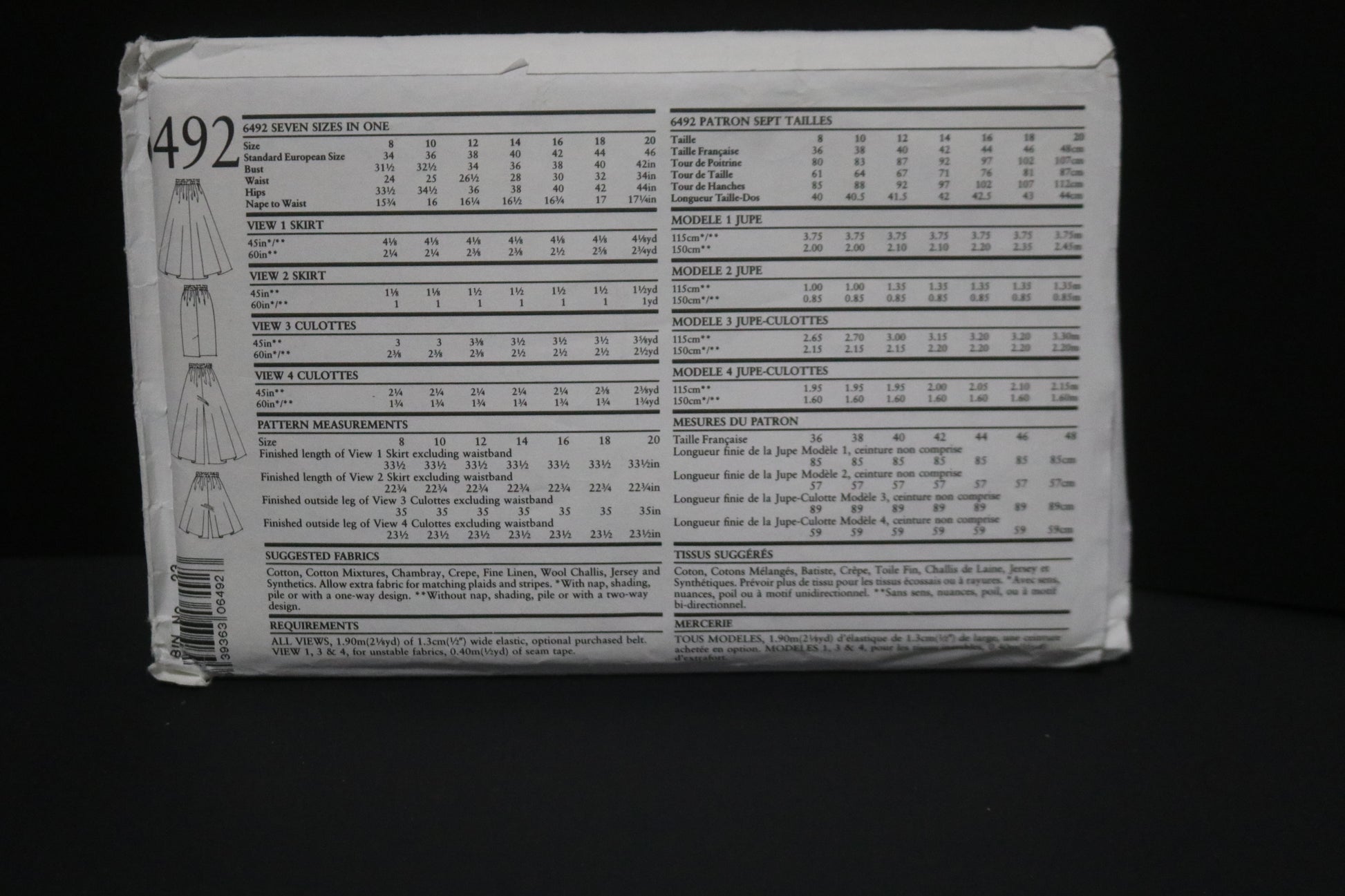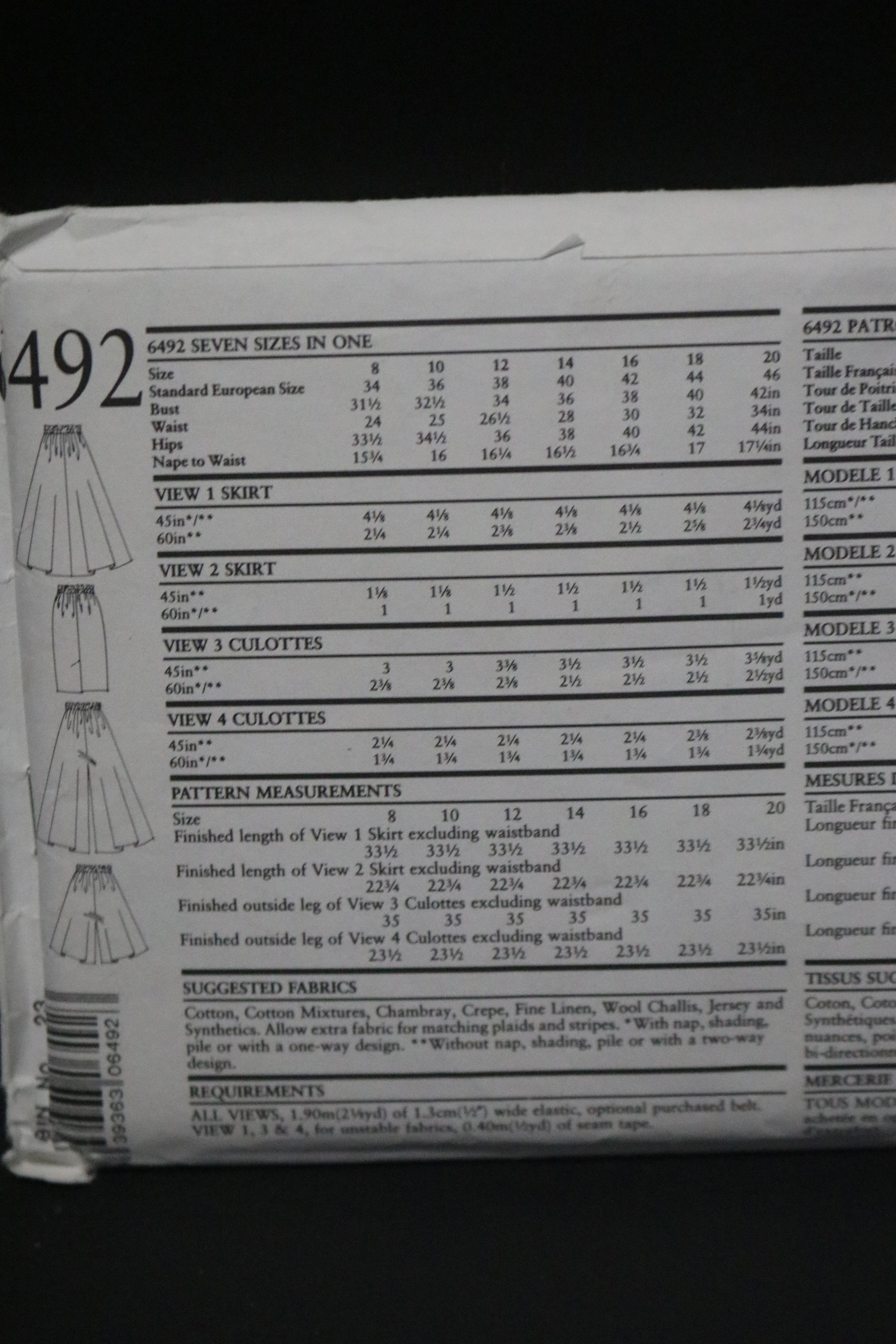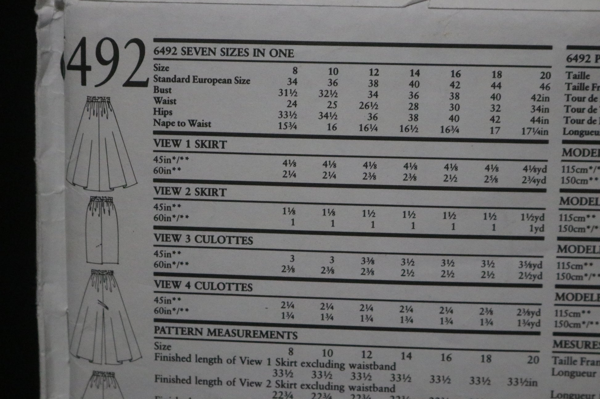 New Look 6492 Misses Skirt and Cullotes Sewing Pattern