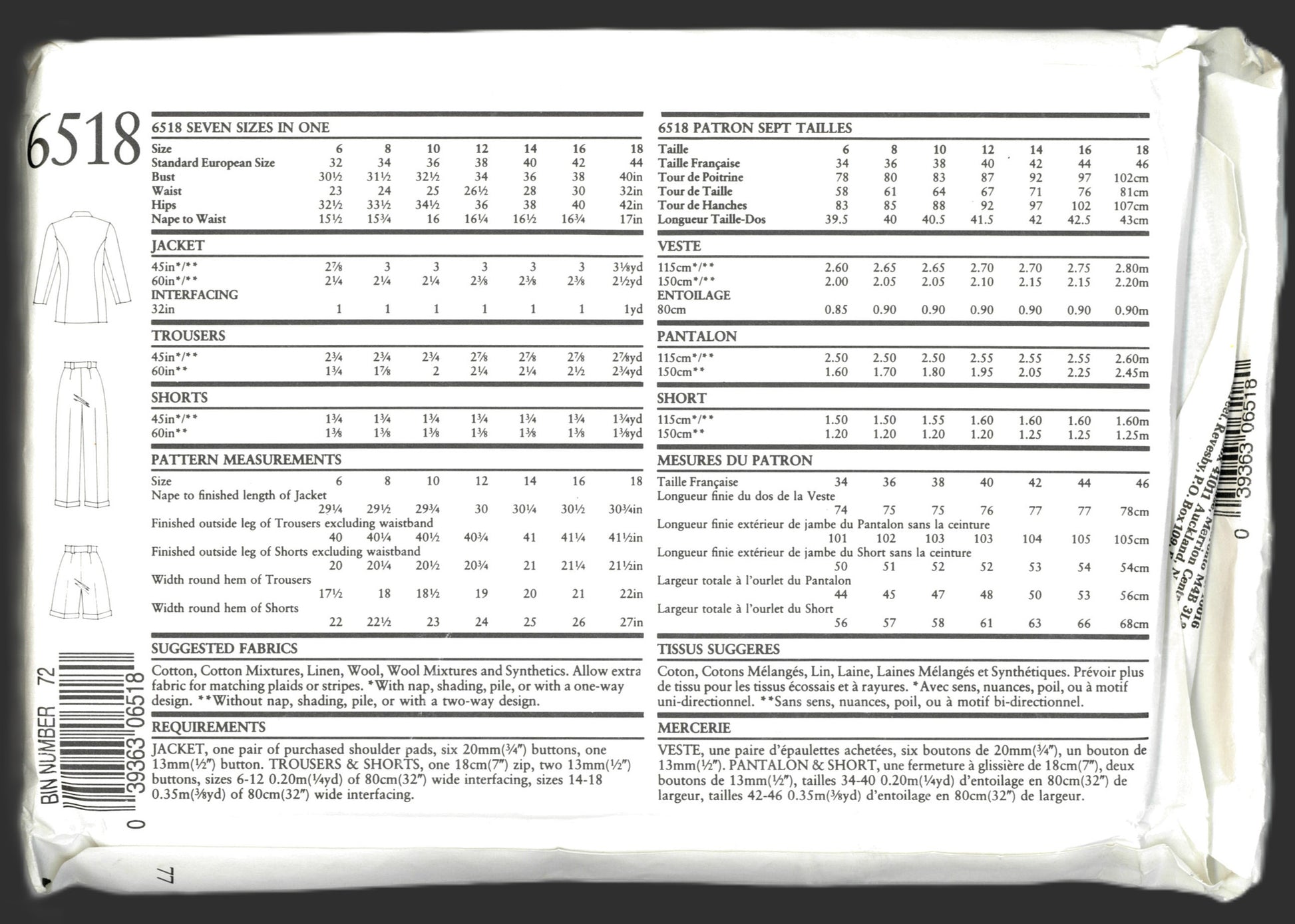 New Look 6518 Misses Jacket Shorts and Pants Sewing Pattern