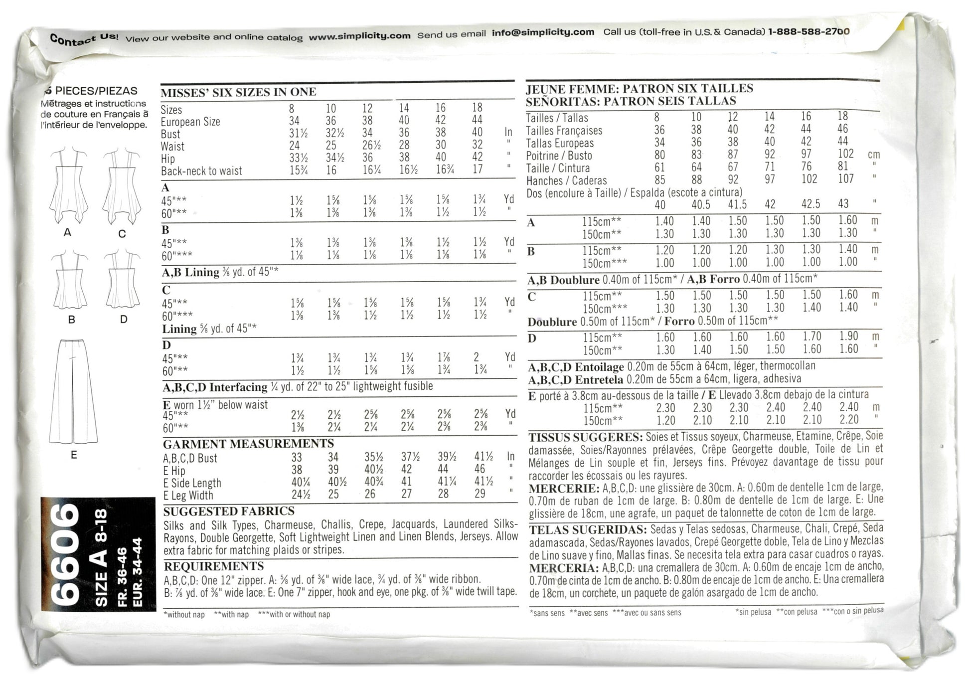 New Look 6606 Misses Top and Pants Sewing Pattern UNCUT - Size 8 - 18
