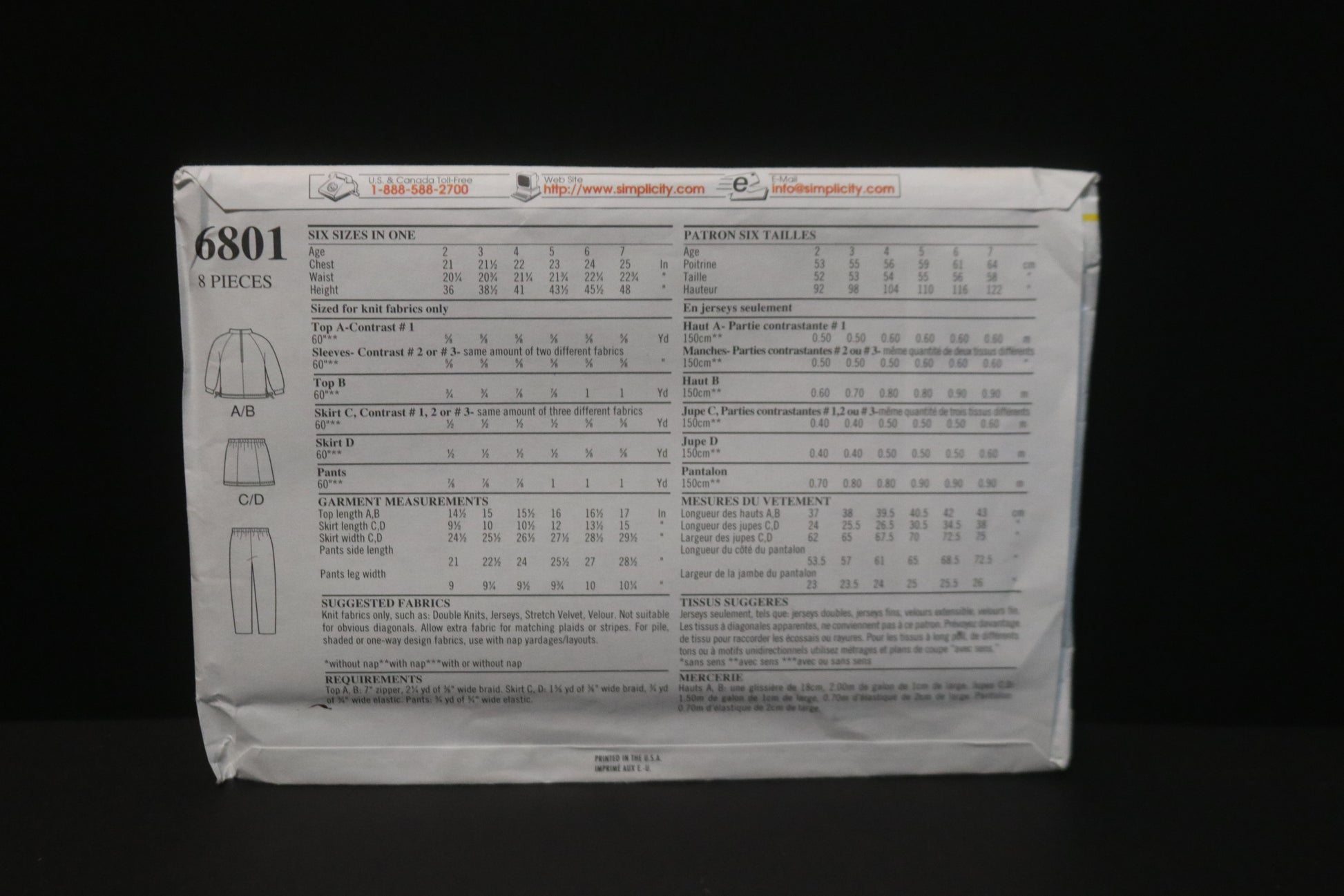 New Look 6801 Children's Girls Top Pants and Skirt Sewing Pattern