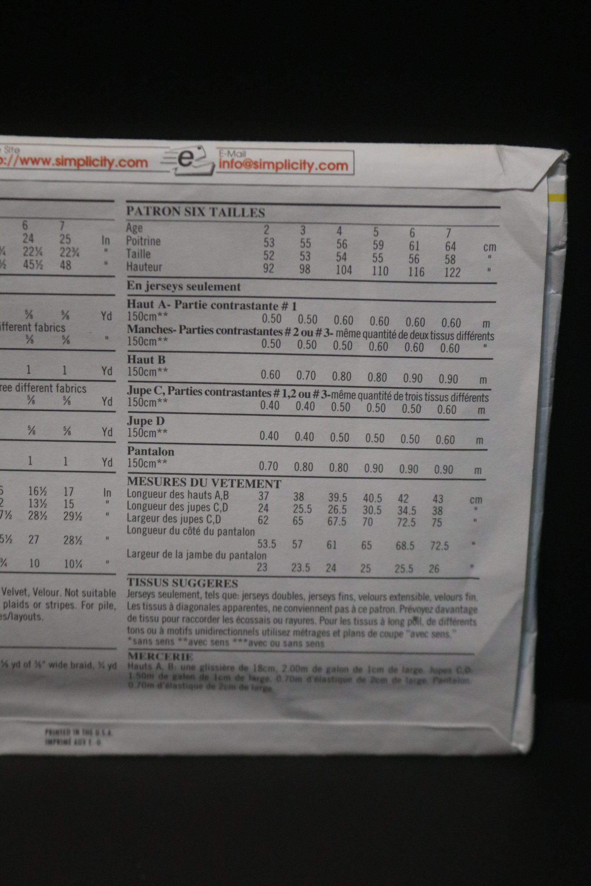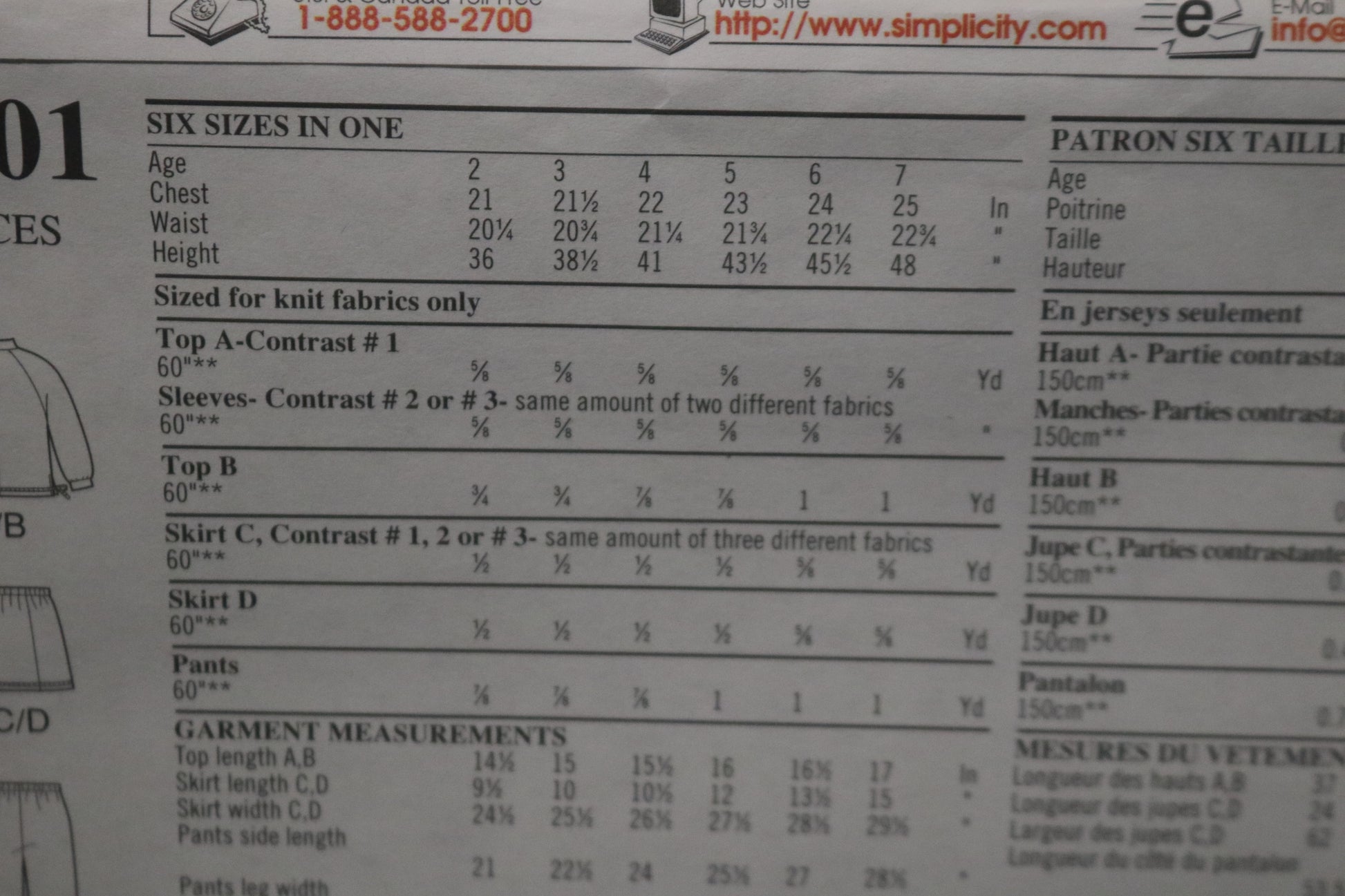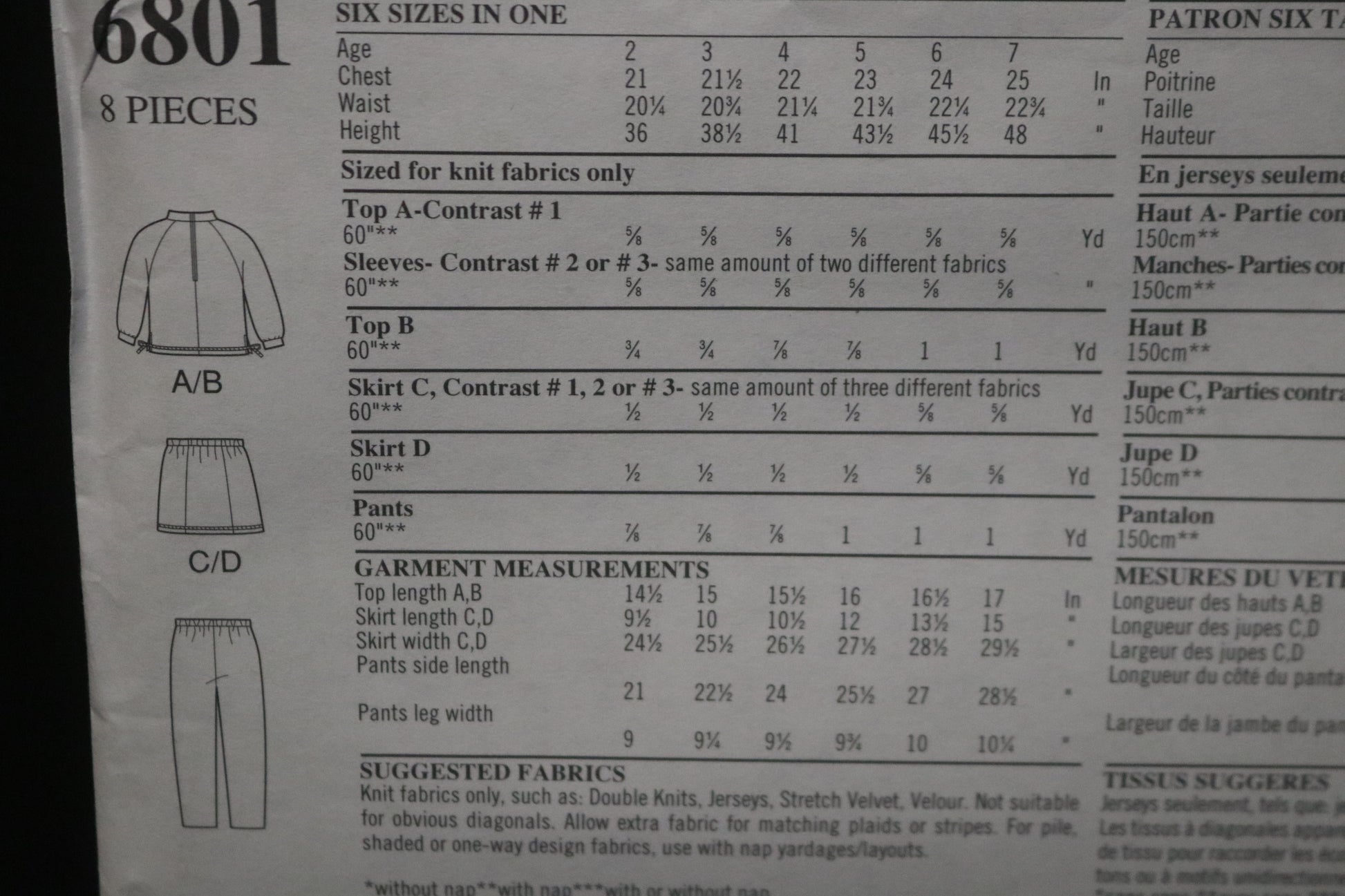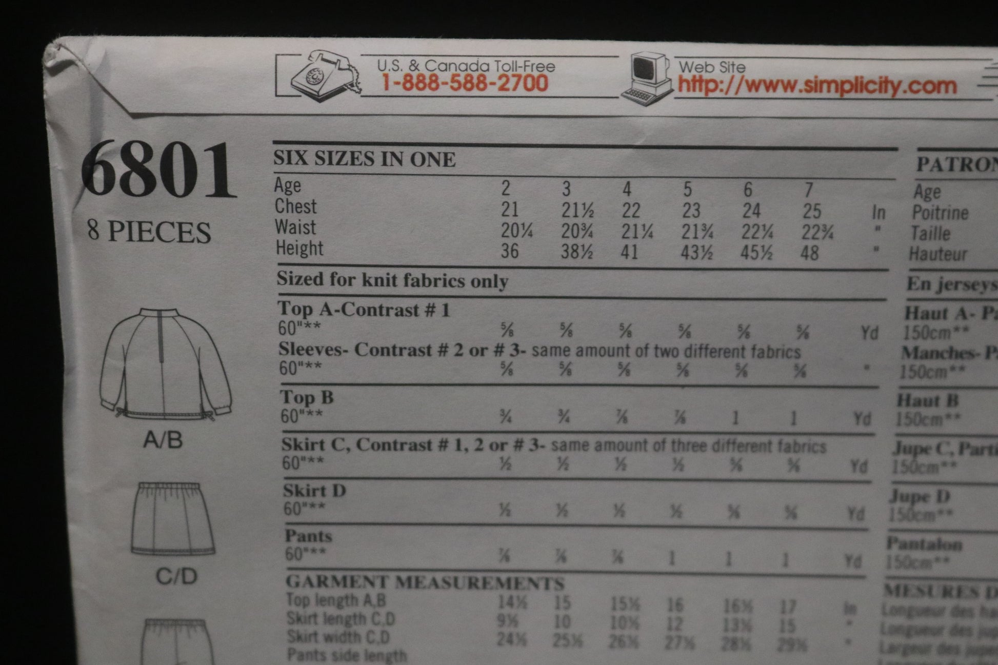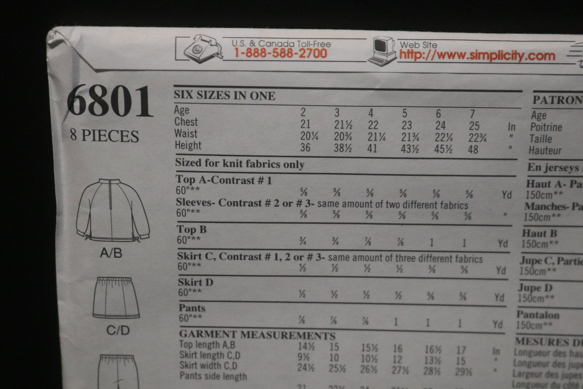 New Look 6801 CHildrens Girls Top Pants and Skirt Sewing Pattern UNCUT Size 2 - 7