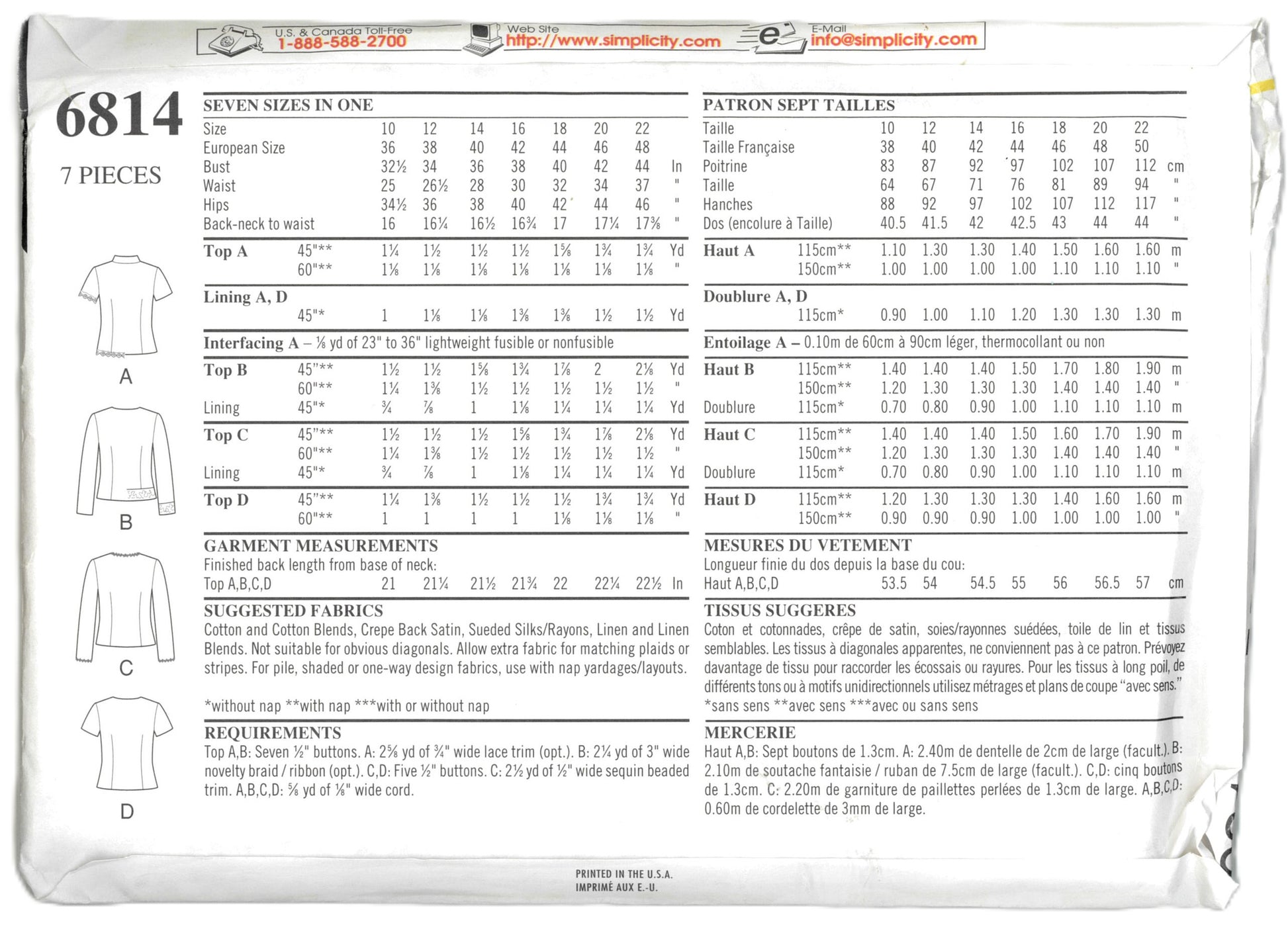 New Look 6814 Misses Tops Sewing Pattern UNCUT - Size 10 - 22