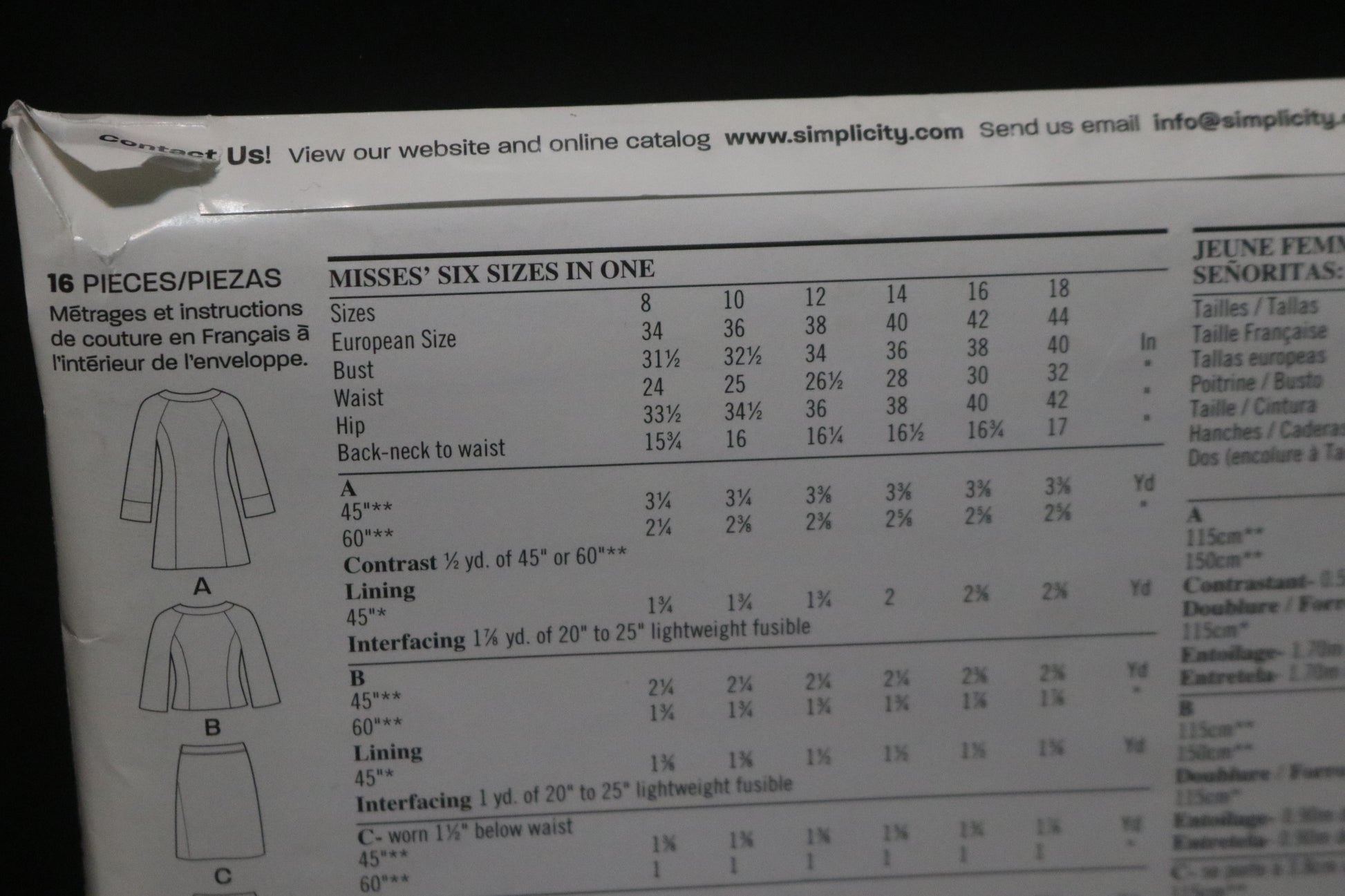 New Look 6855 Misses Skirt, Pants and Lined Coat or Jacket Sewing Pattern