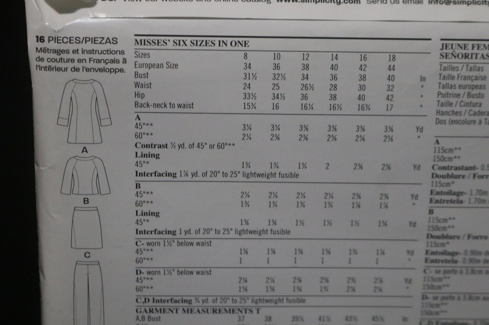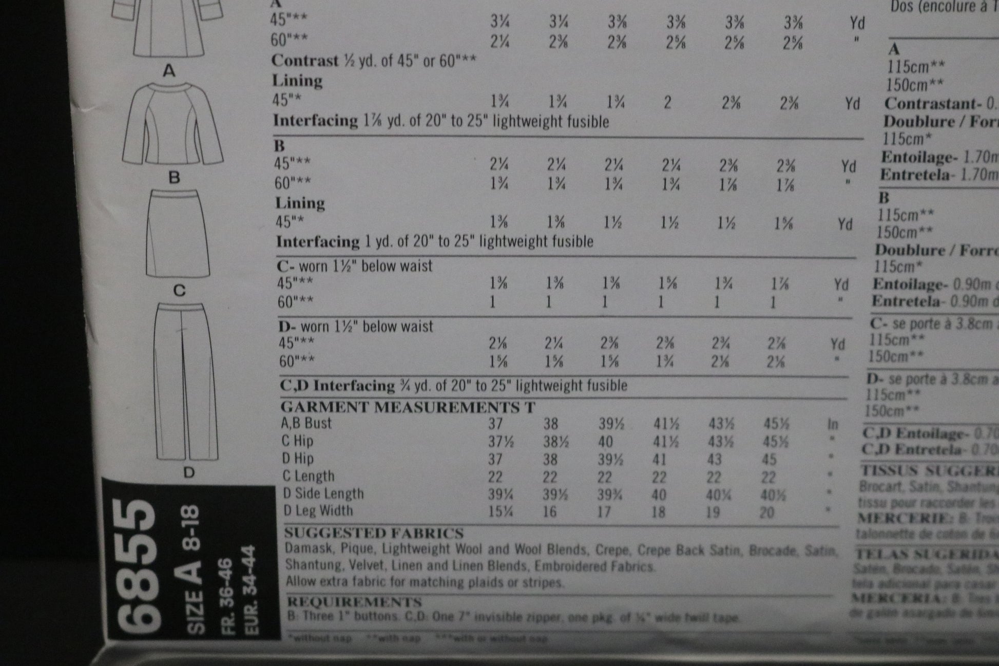 New Look 6855 Misses Skirt, Pants and Lined Coat or Jacket Sewing Pattern UNCUT - Size 8 - 18