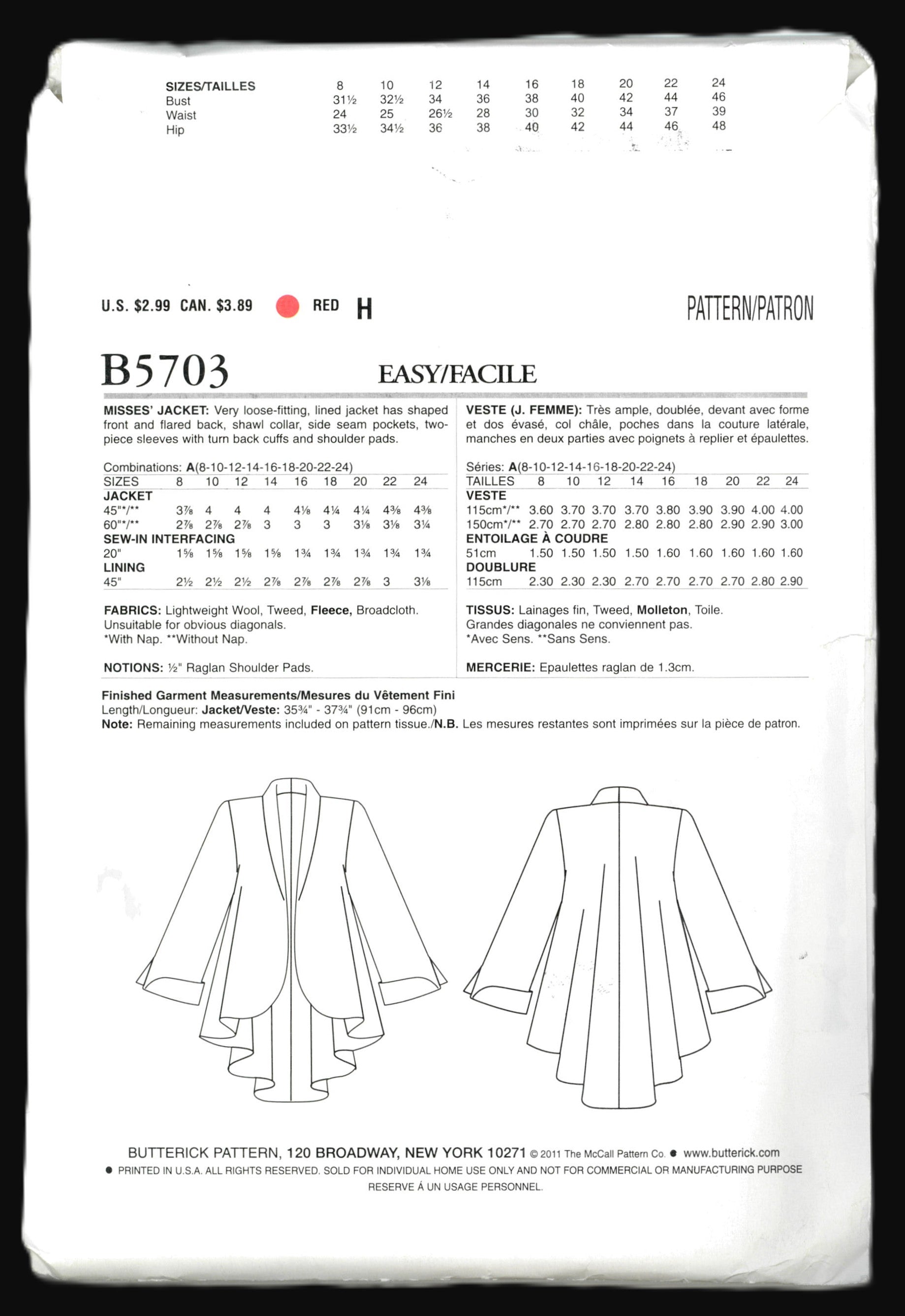 See and Sew 5703 Misses Jacket Sewing Pattern