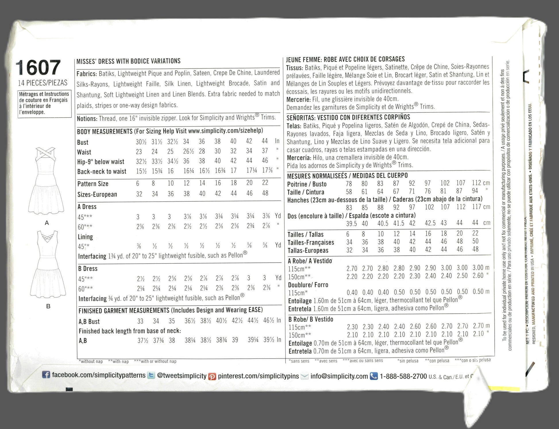 Simplicity 1607 Cynthia Rowley Misses Dress with Bodice Variations Sewing Pattern UNCUT Size 14 16 18 20 22