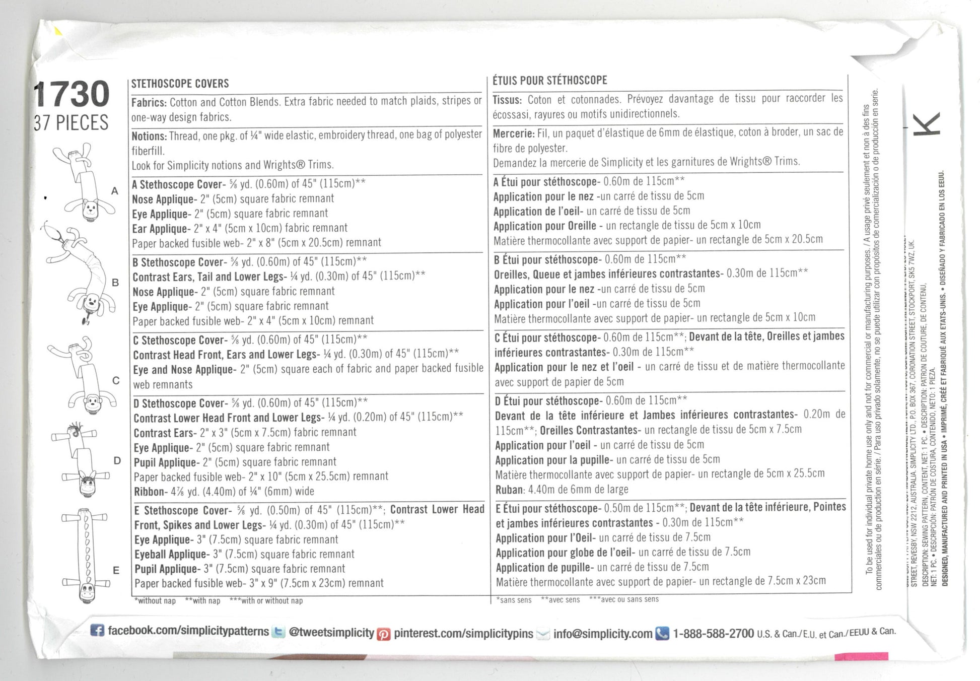 Simplicity 1730 Longia Mille Stethoscope Covers Sewing Pattern