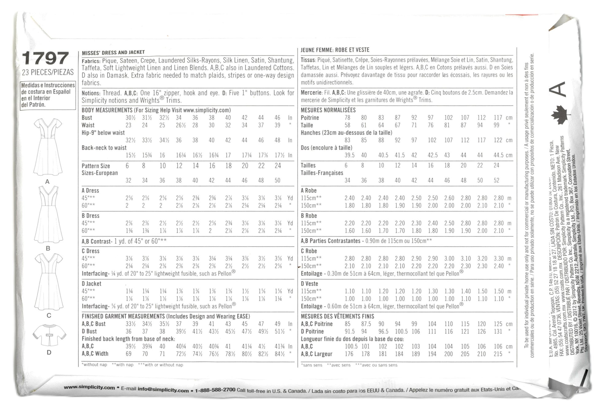 Simplicity 1797 Misses Dress and Jacket Sewing Pattern