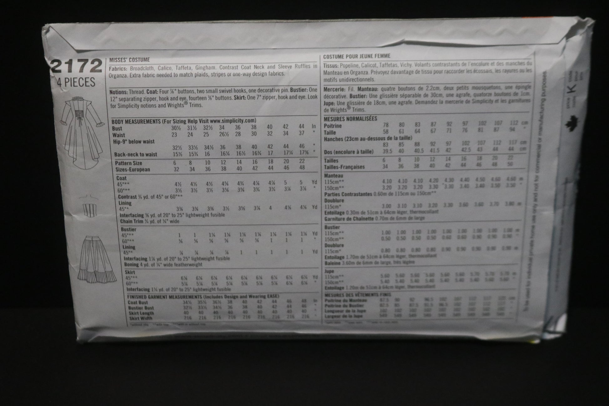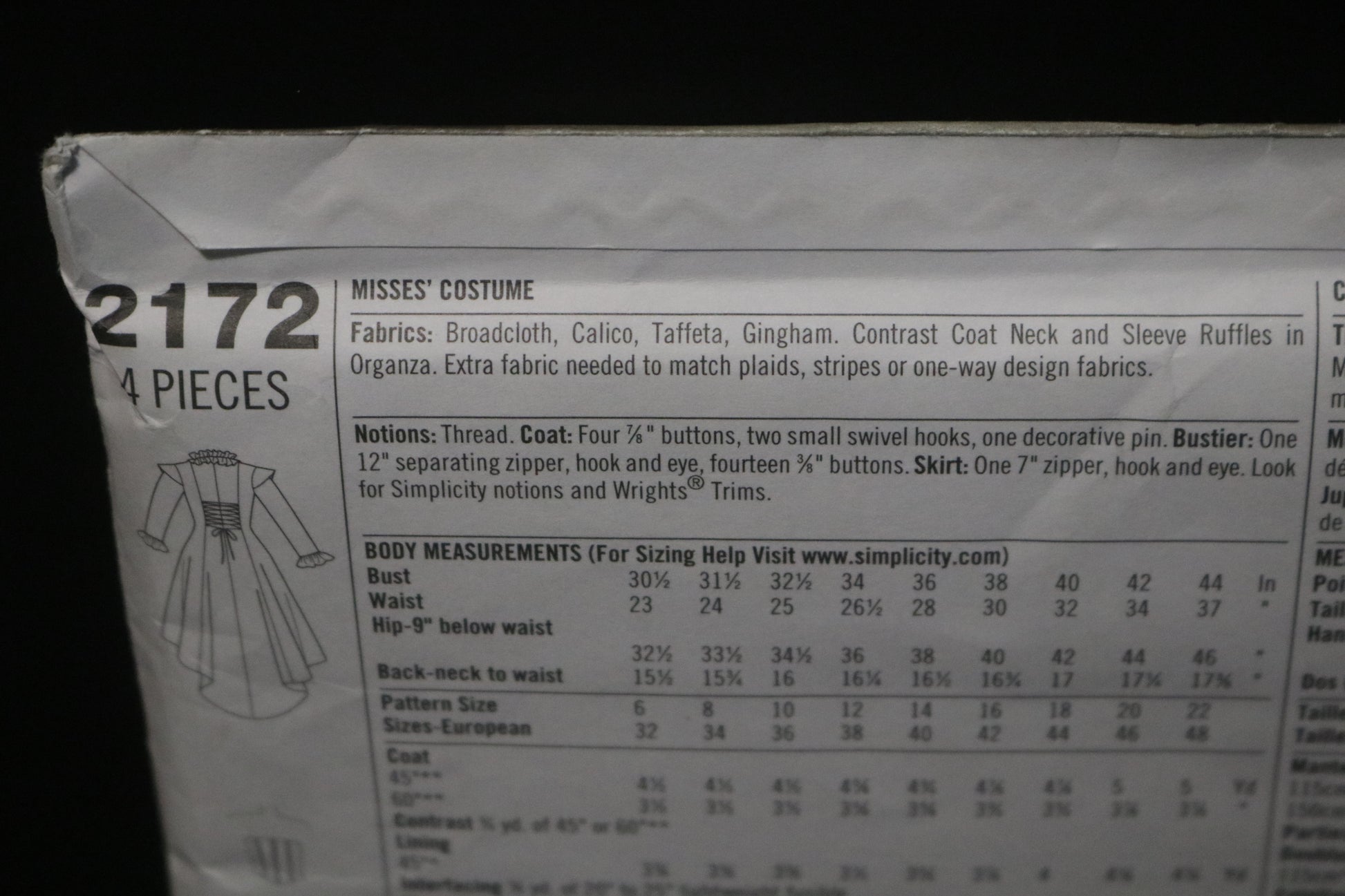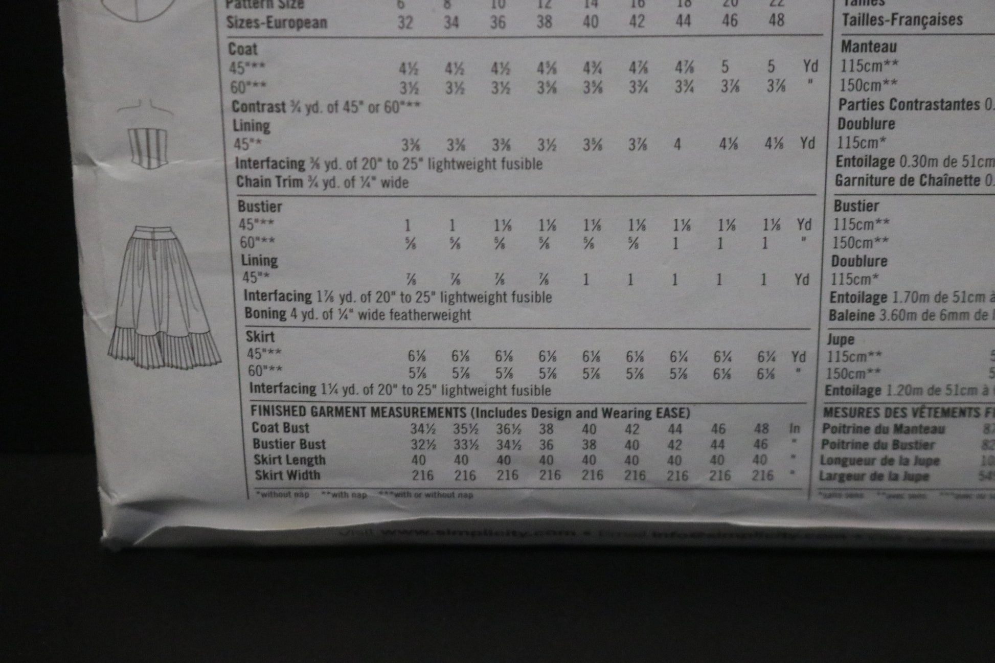 Simplicity 2172 Misses Steam Punk Victorian era styled coat, skirt and bustier Costumes Sewing Pattern UNCUT Size 14 16 18 20 22