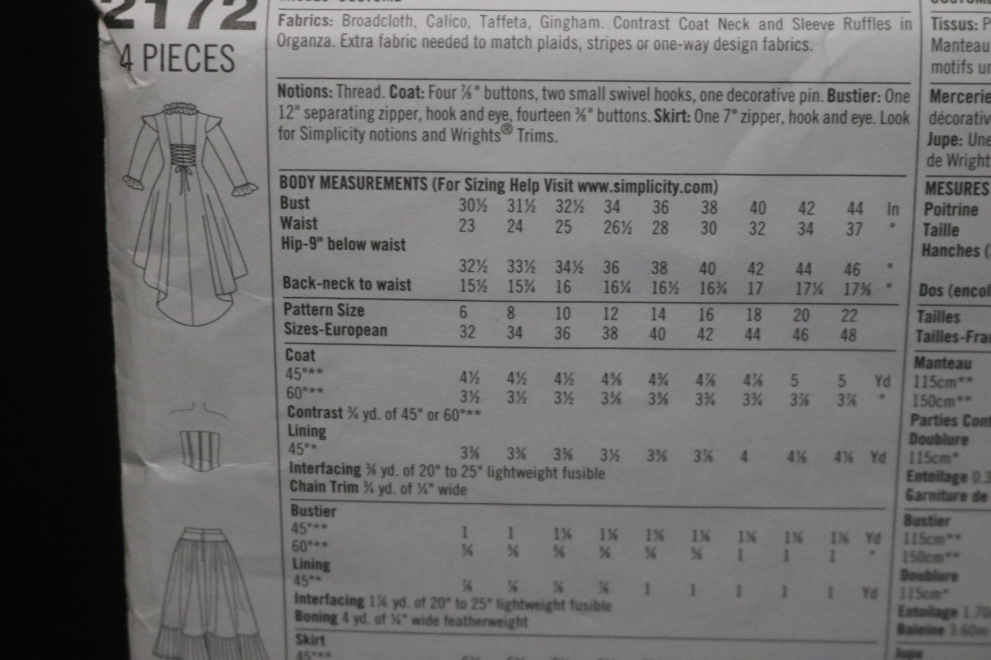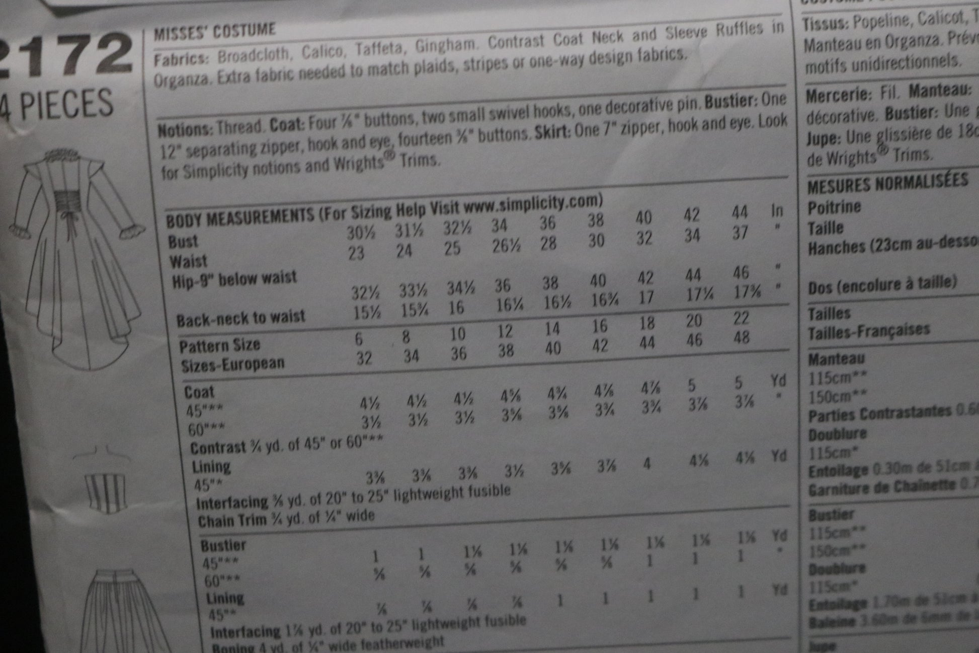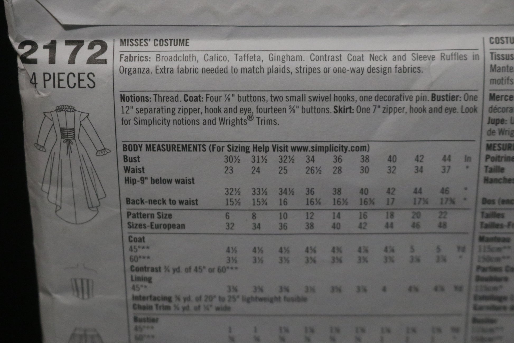 Simplicity 2172 Misses Steam Punk Victorian era styled coat, skirt and bustier Costumes Sewing Pattern UNCUT Size 14 16 18 20 22