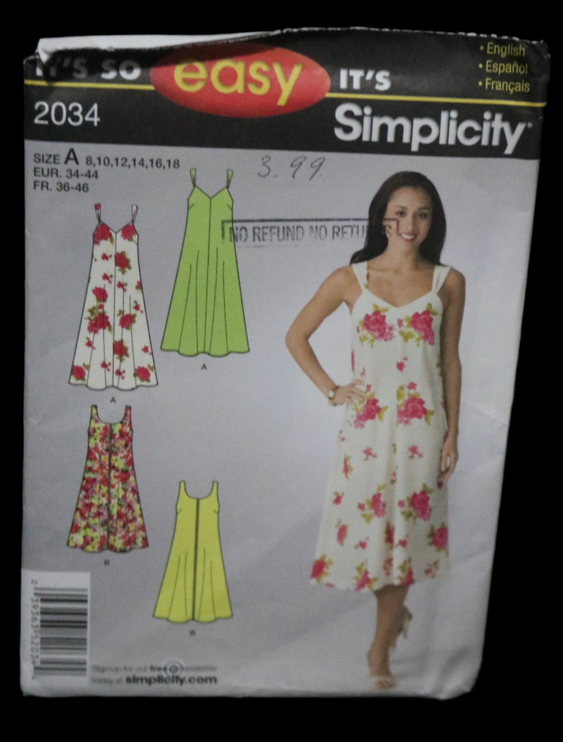 Simplicity 2034 Misses Dress in Two Lengths Sewing Pattern UNCUT Size 8 10 12 14 16 18