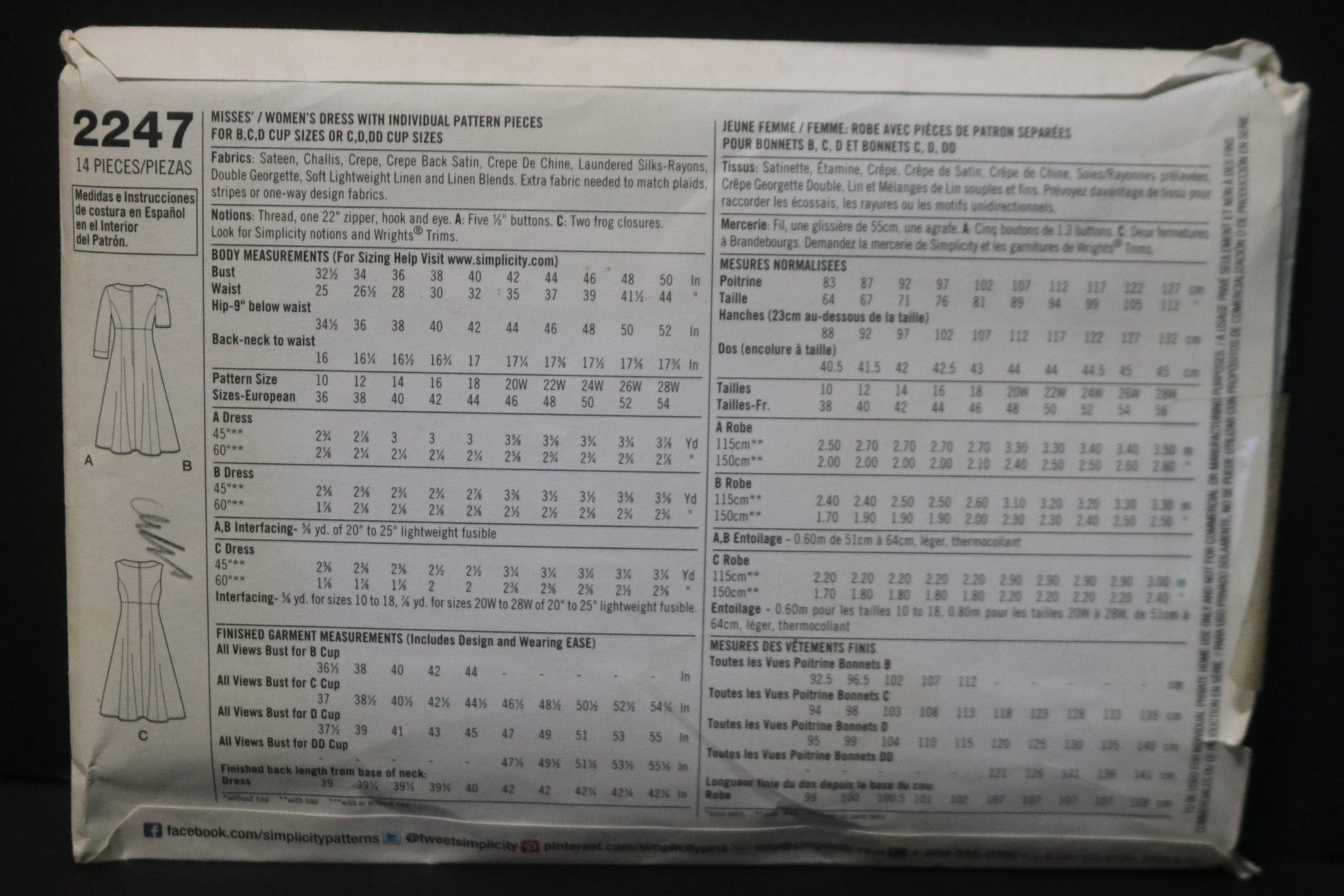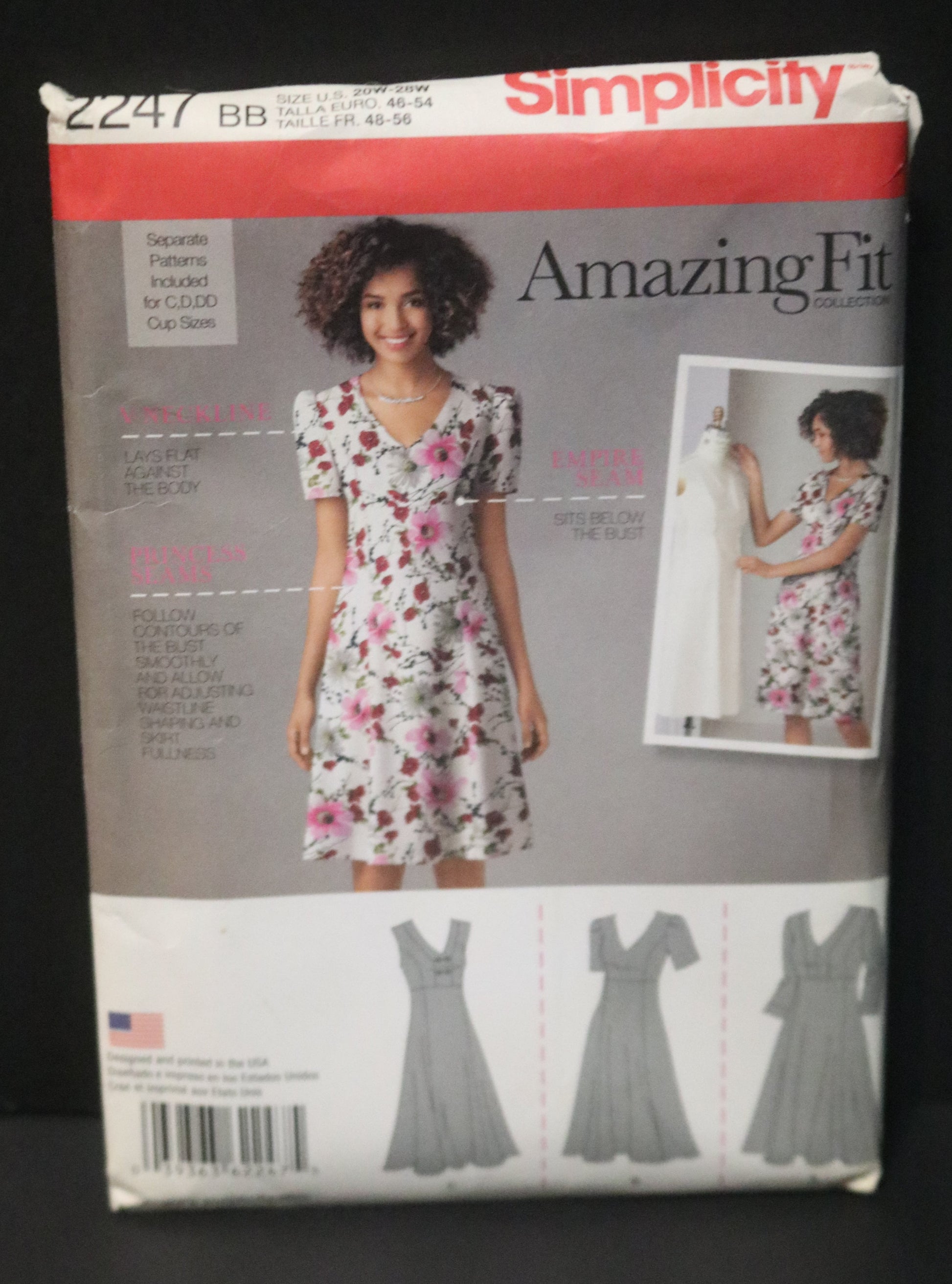 Simplicity 2247 Amazing Fit Women's Dress with Individual Pattern Pieces for B,C,D cup or C,D, DD Cup Sizes Sewing Pattern UNCUT - Size 20w 22w 24w 26w