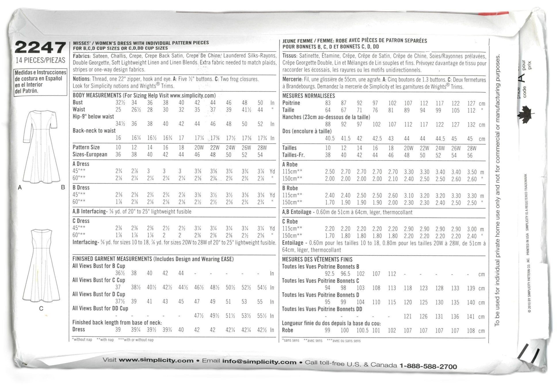 Simplicity 2247 Amazing Fit Women's Dress with Individual Pattern Pieces for B,C,D cup or C,D, DD Cup Sewing Pattern