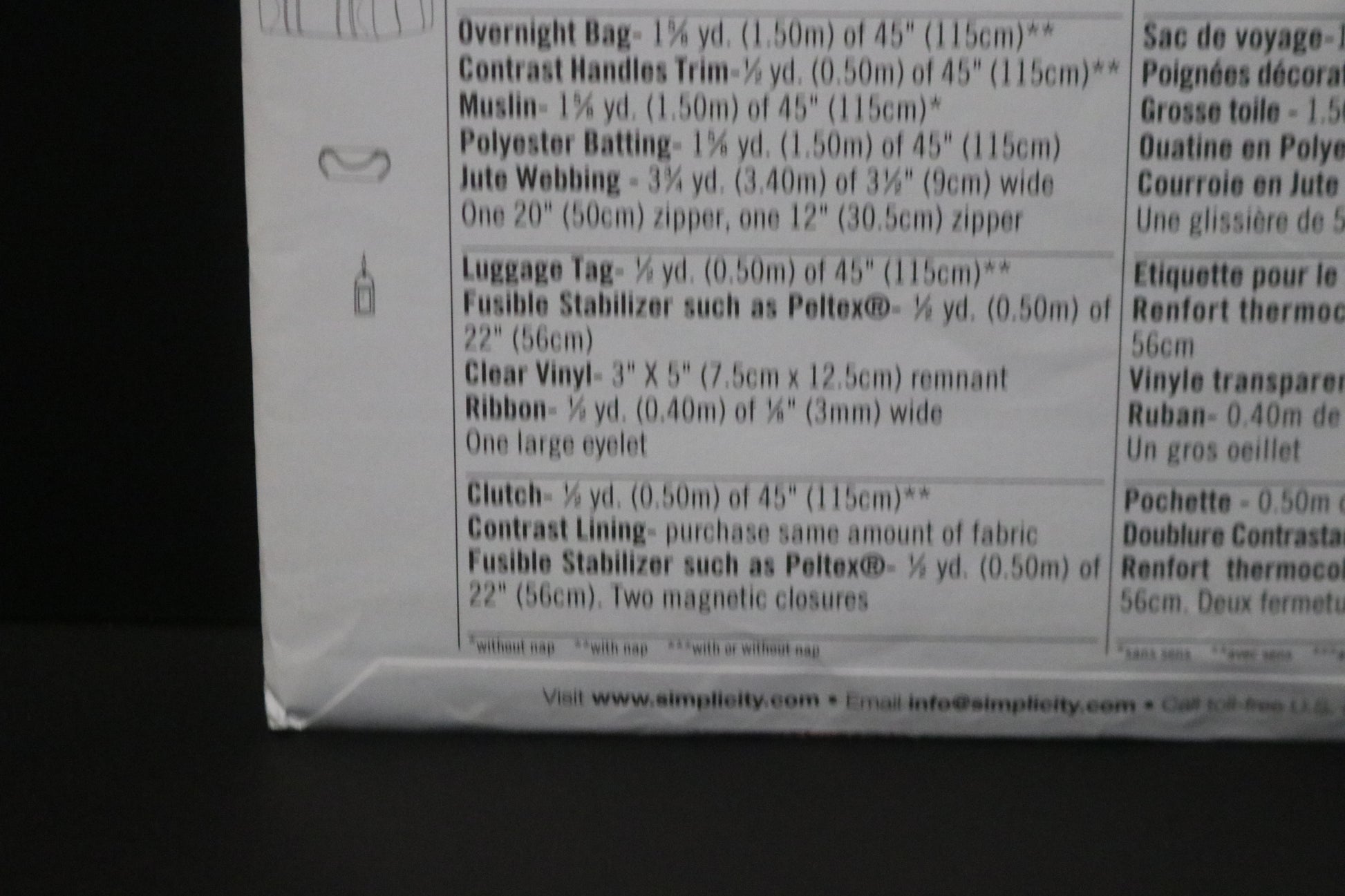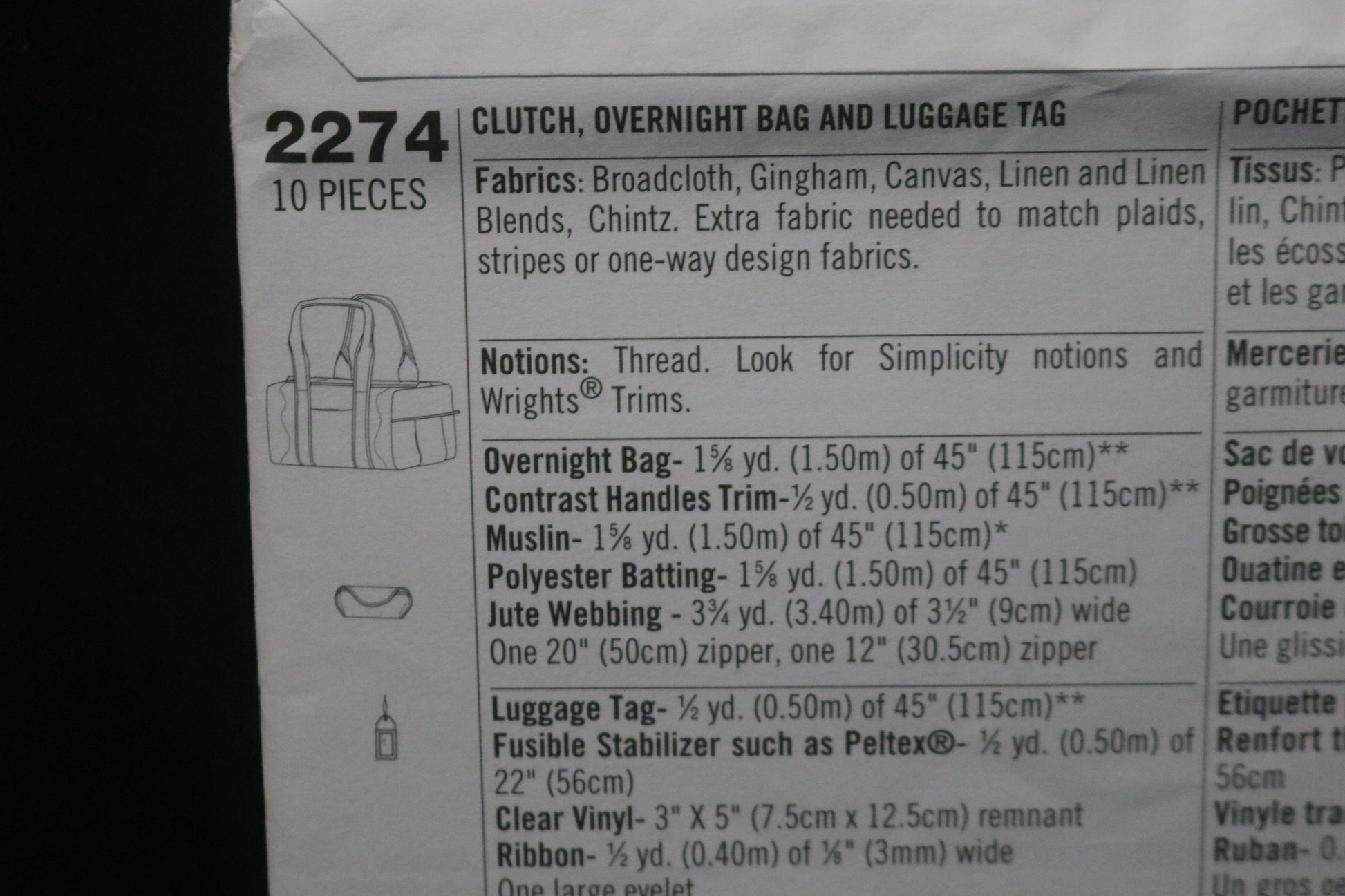 Simplicity 2274 Clutch, Overnight Bag and Luggage Tag Sewing Pattern