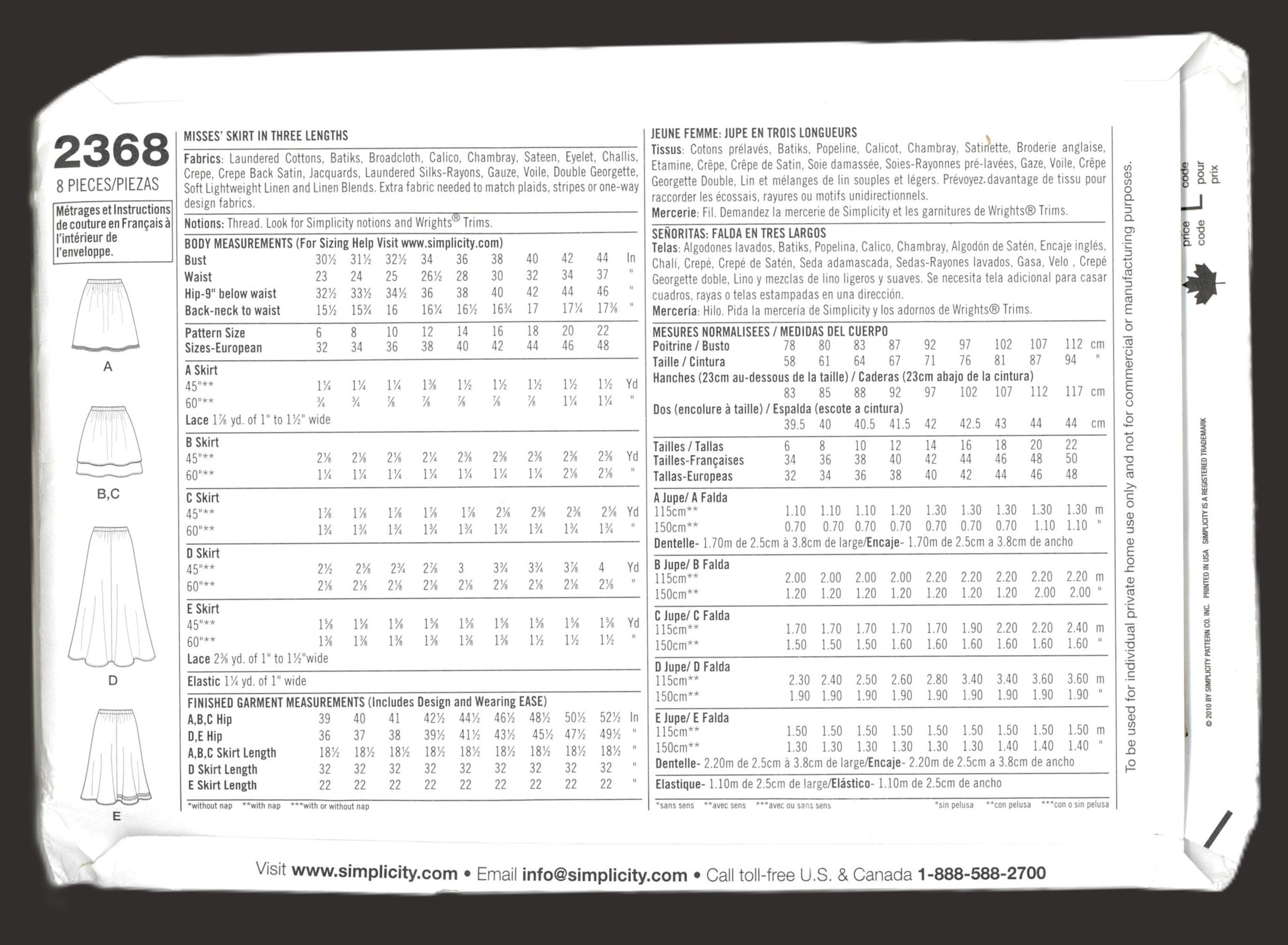 Simplicity 2368 Misses Skirt in Three Lengths Sewing Pattern