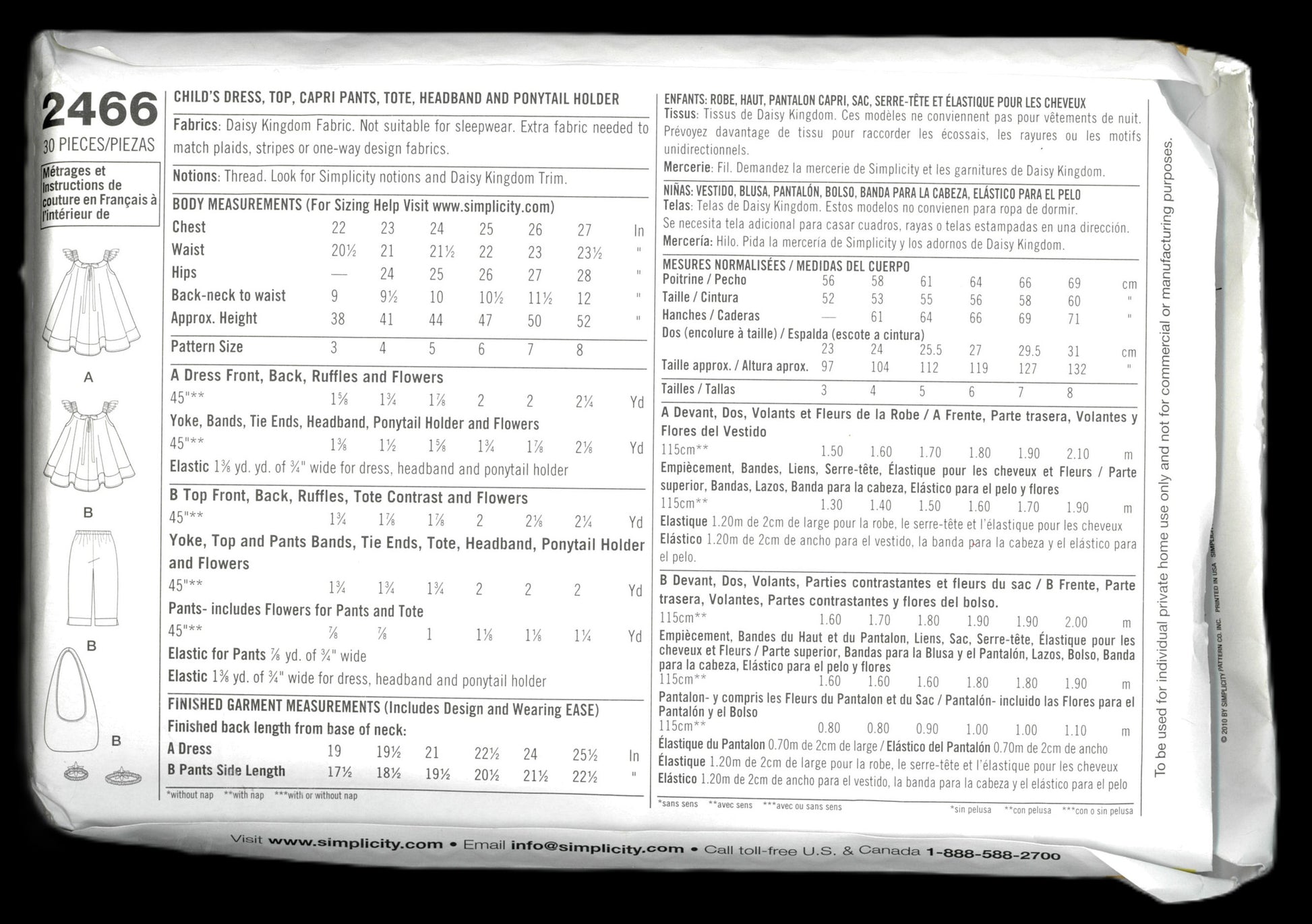 Simplicity 2466 Daisy Kingdom Top Capri Pants, Tote, Headband and Ponytail Holder Sewing Pattern - UNCUT - Size 3 4 5 6 7 8