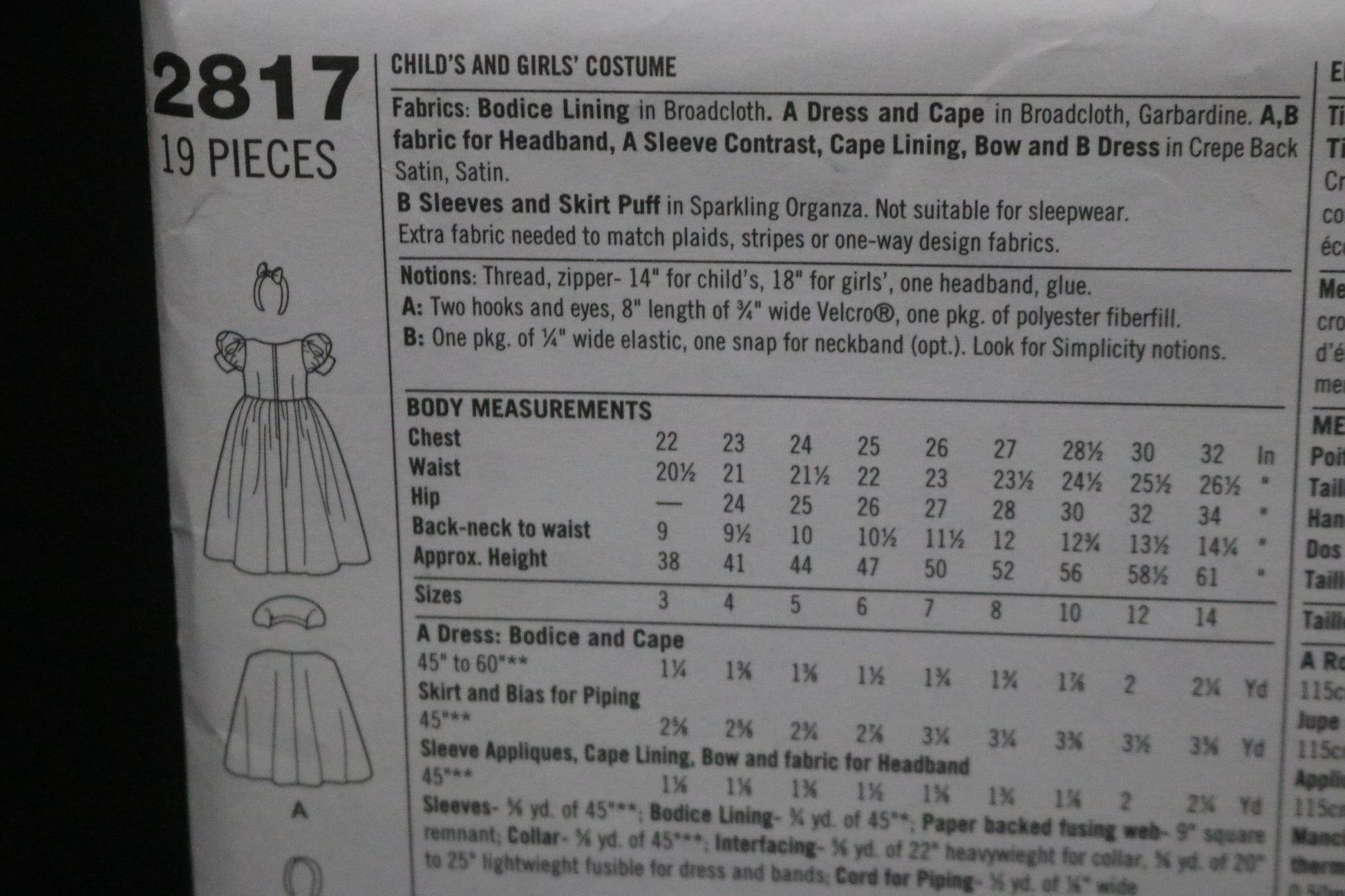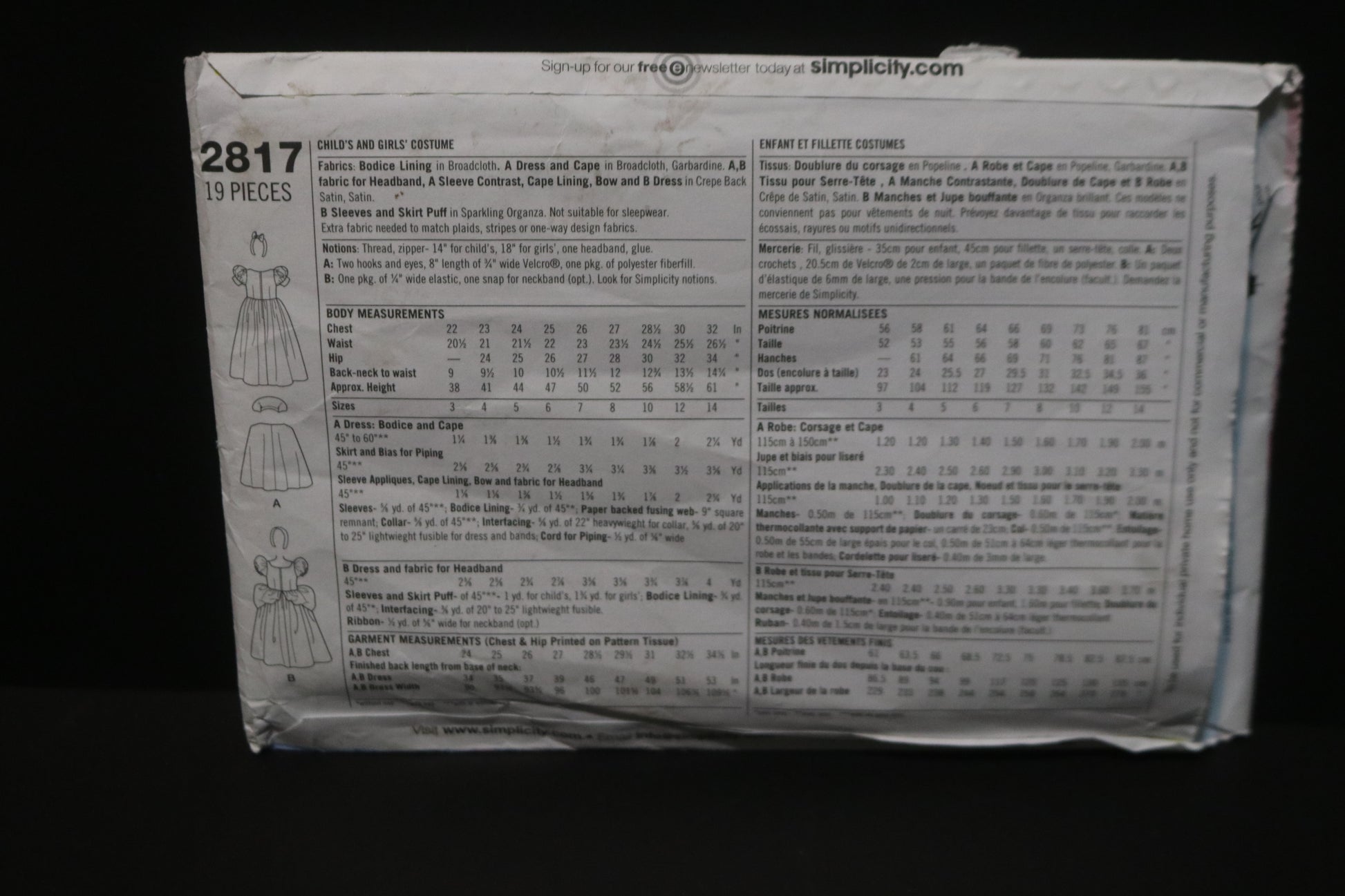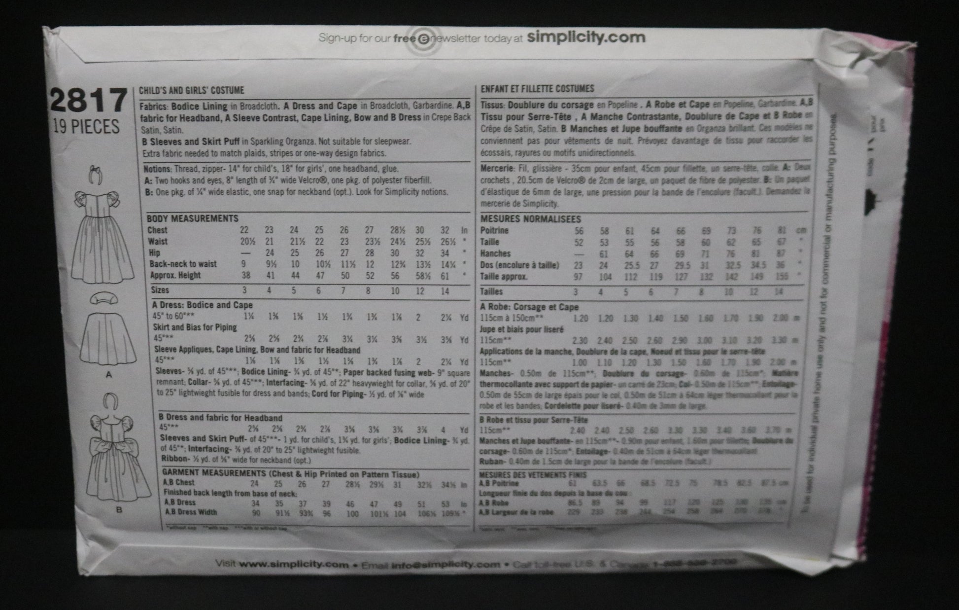 Simplicity 2817 Child and Girl Snow White and Cinderella Costume Sewing Pattern