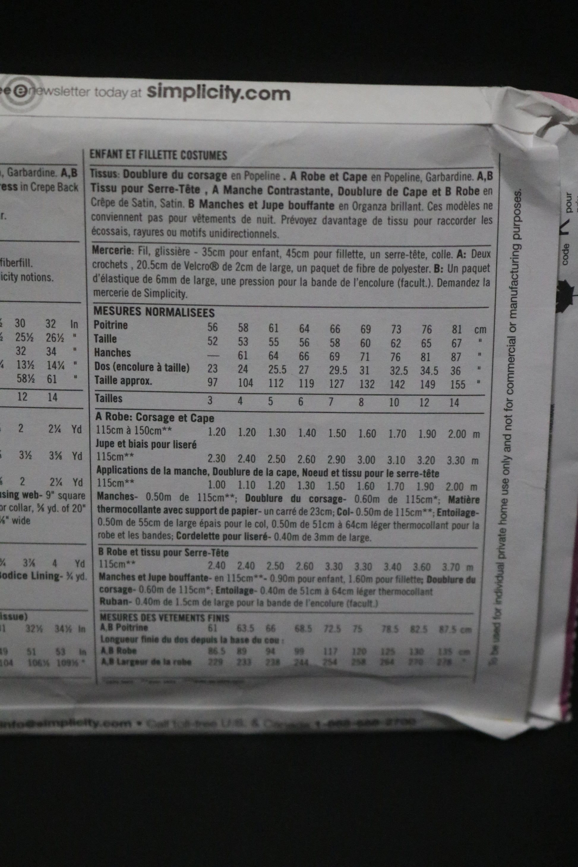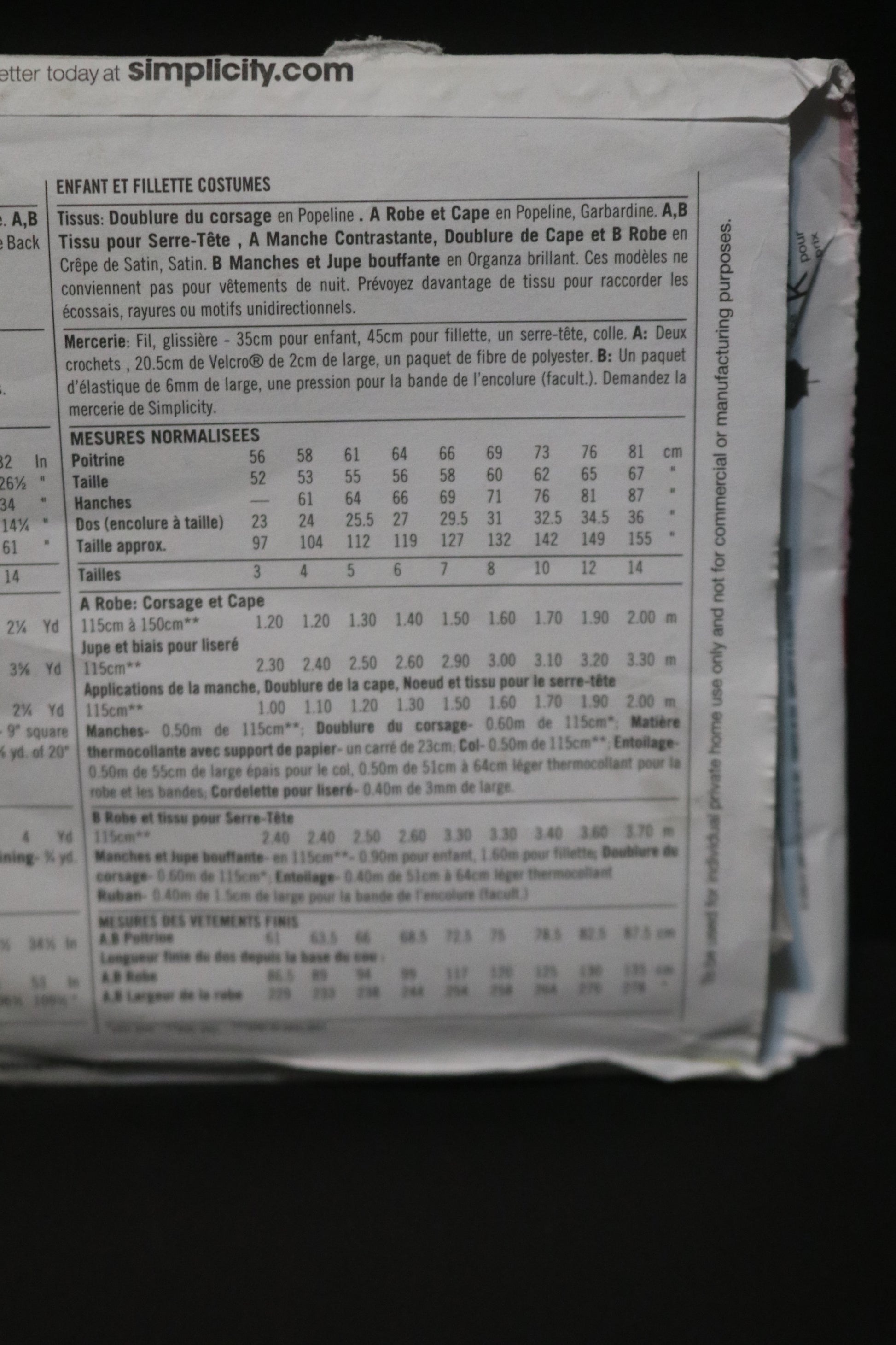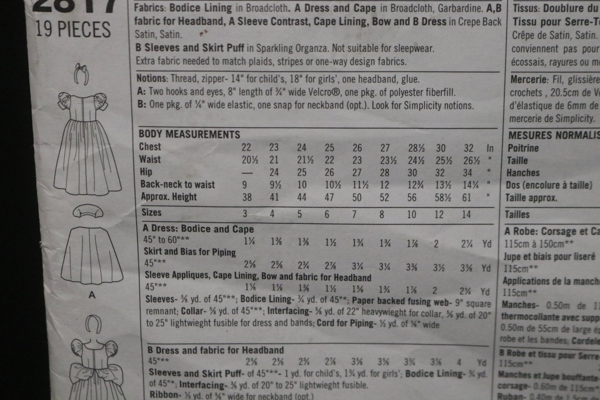 Simplicity 2817 Child and Girl Snow White and Cinderella Costume Sewing Pattern