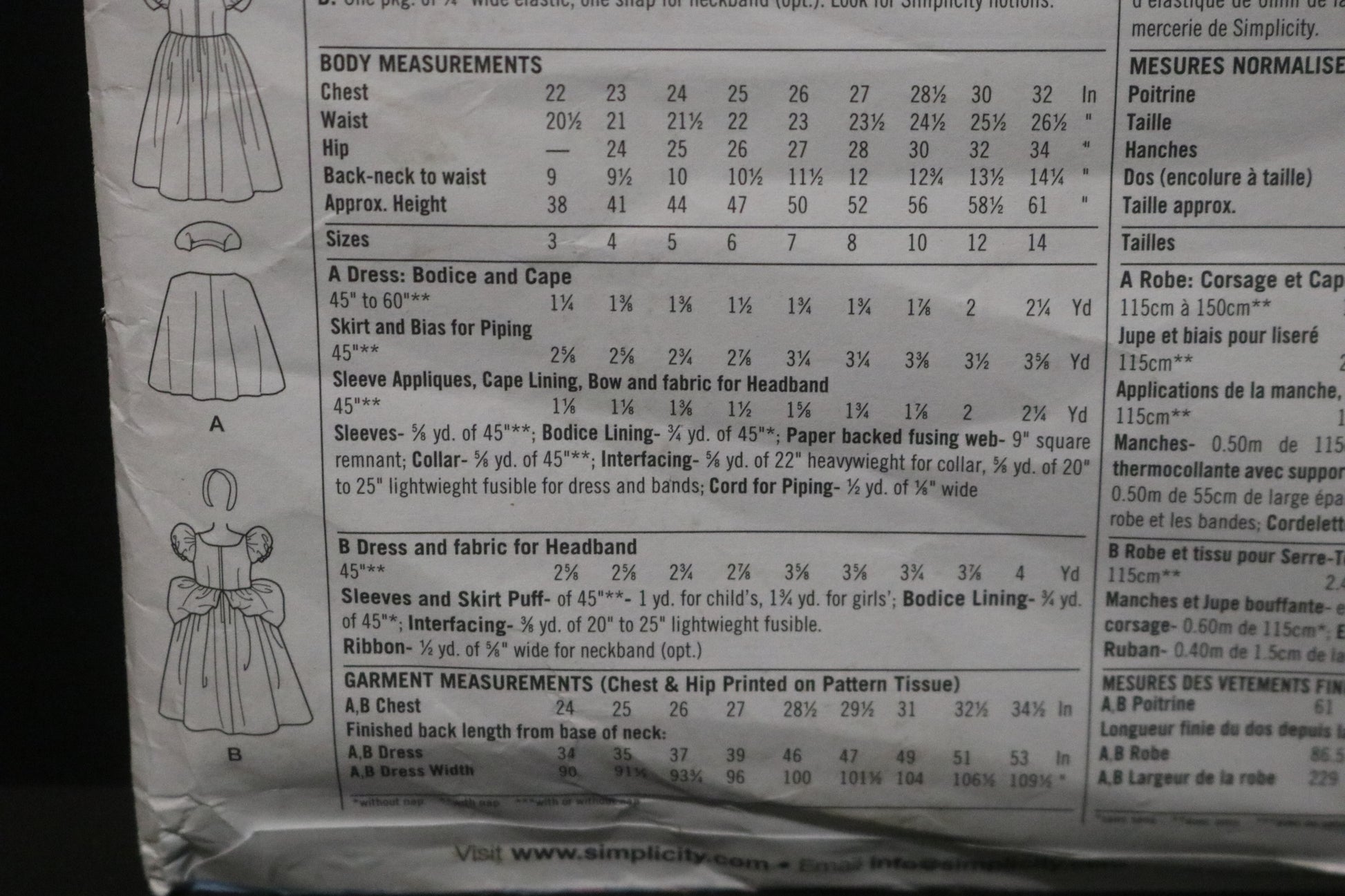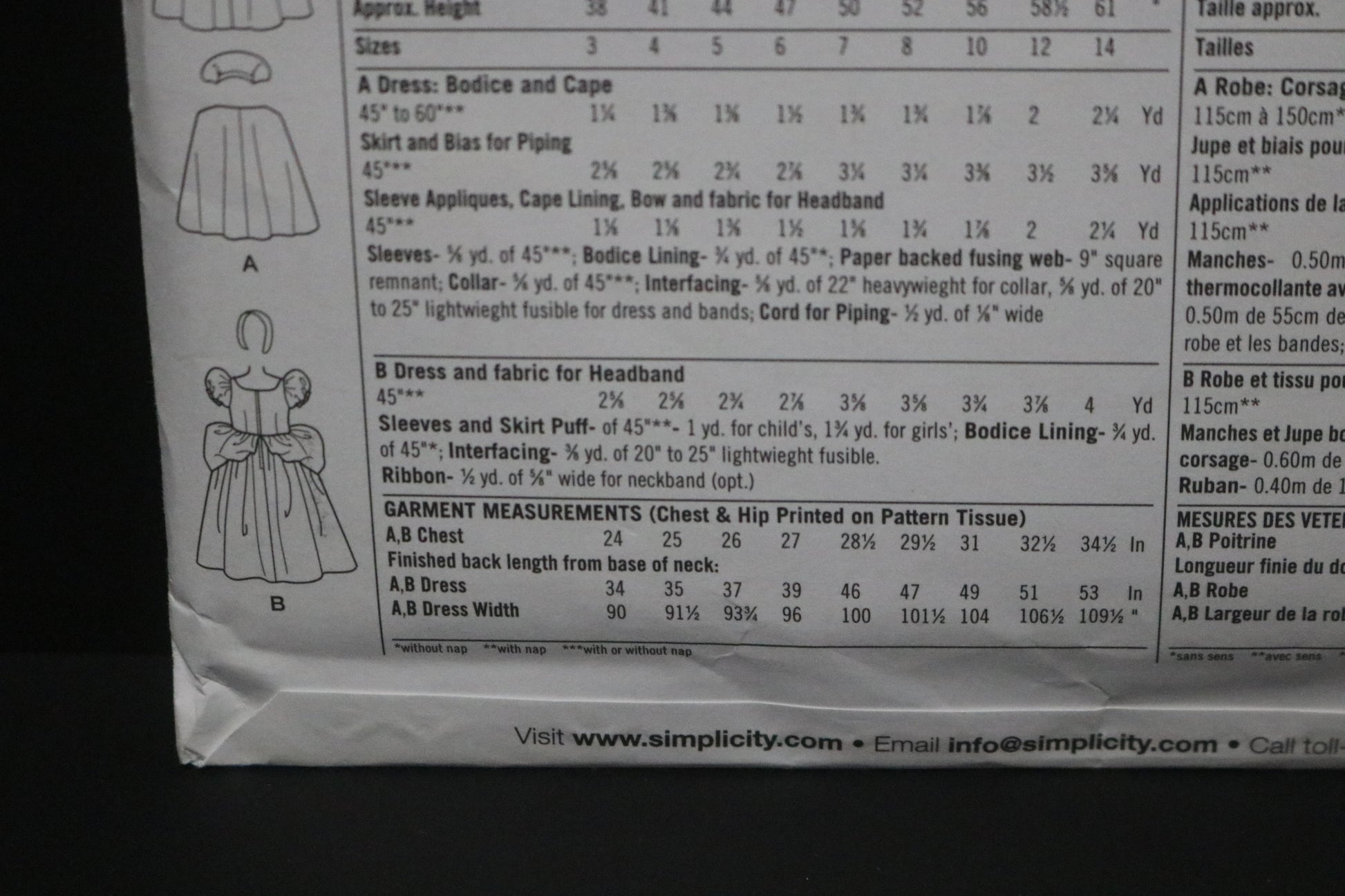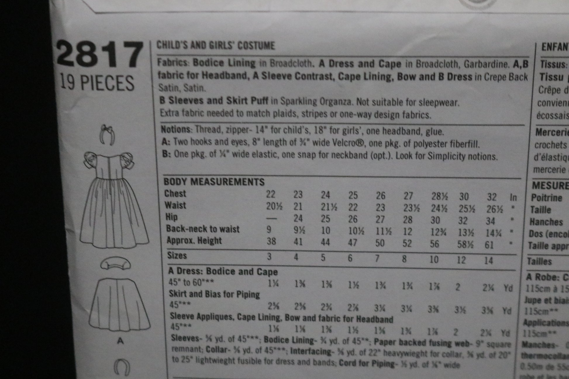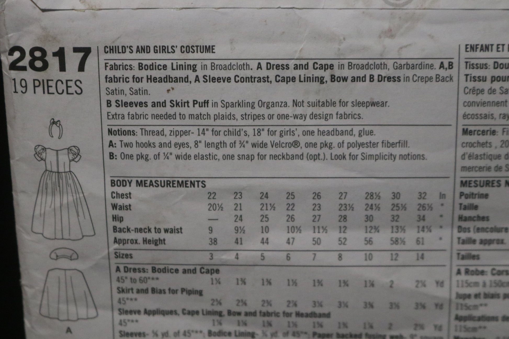 Simplicity 2817 Child and Girl Snow White and Cinderella Costume Sewing Pattern - UNCUT - Size 3 4 5 6 or Size 7 8 10 12 14
