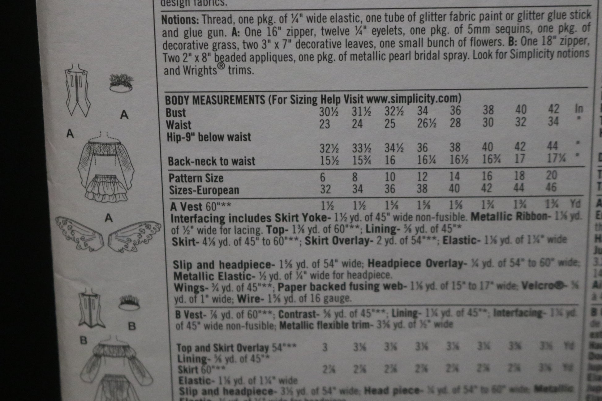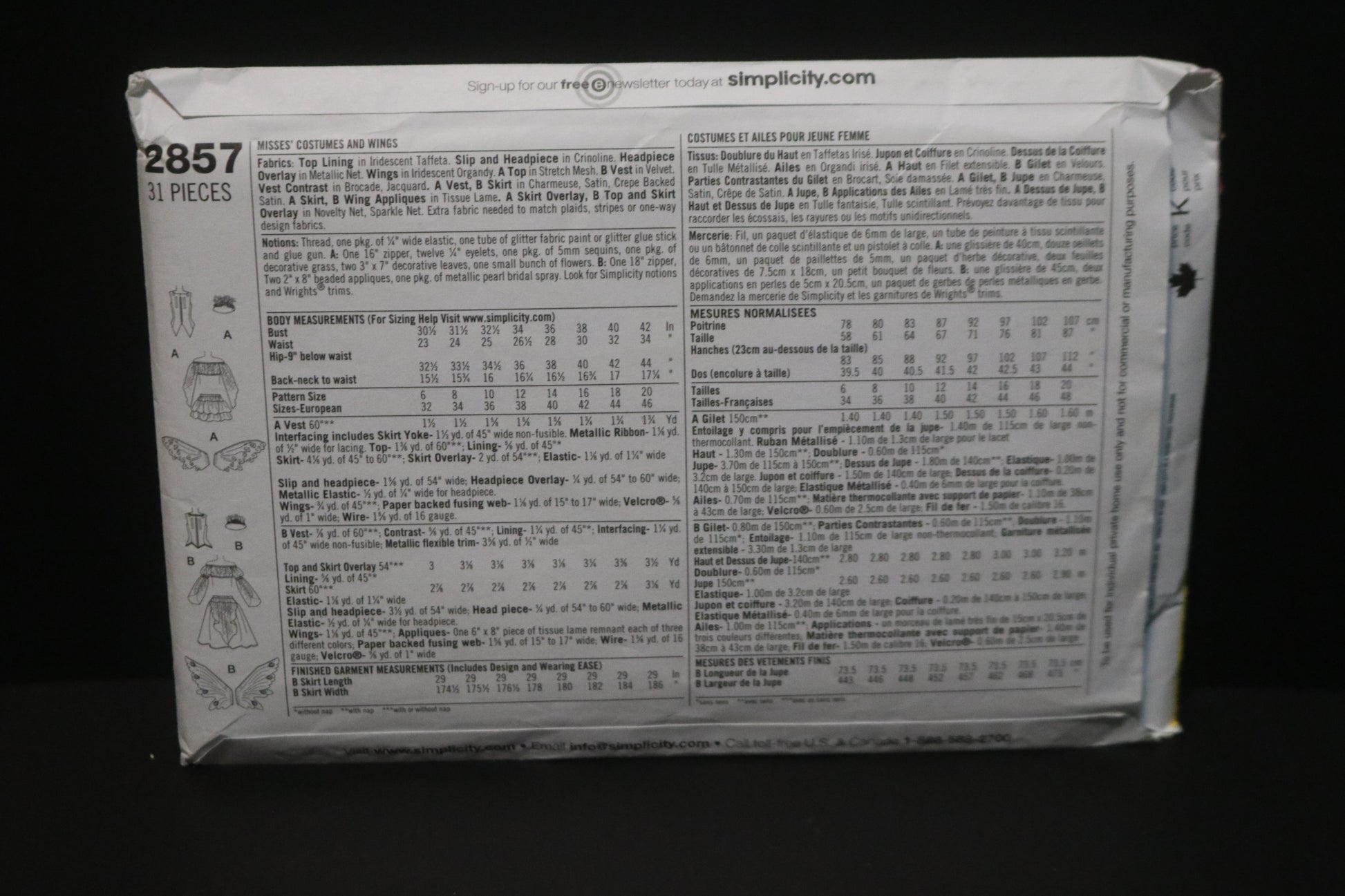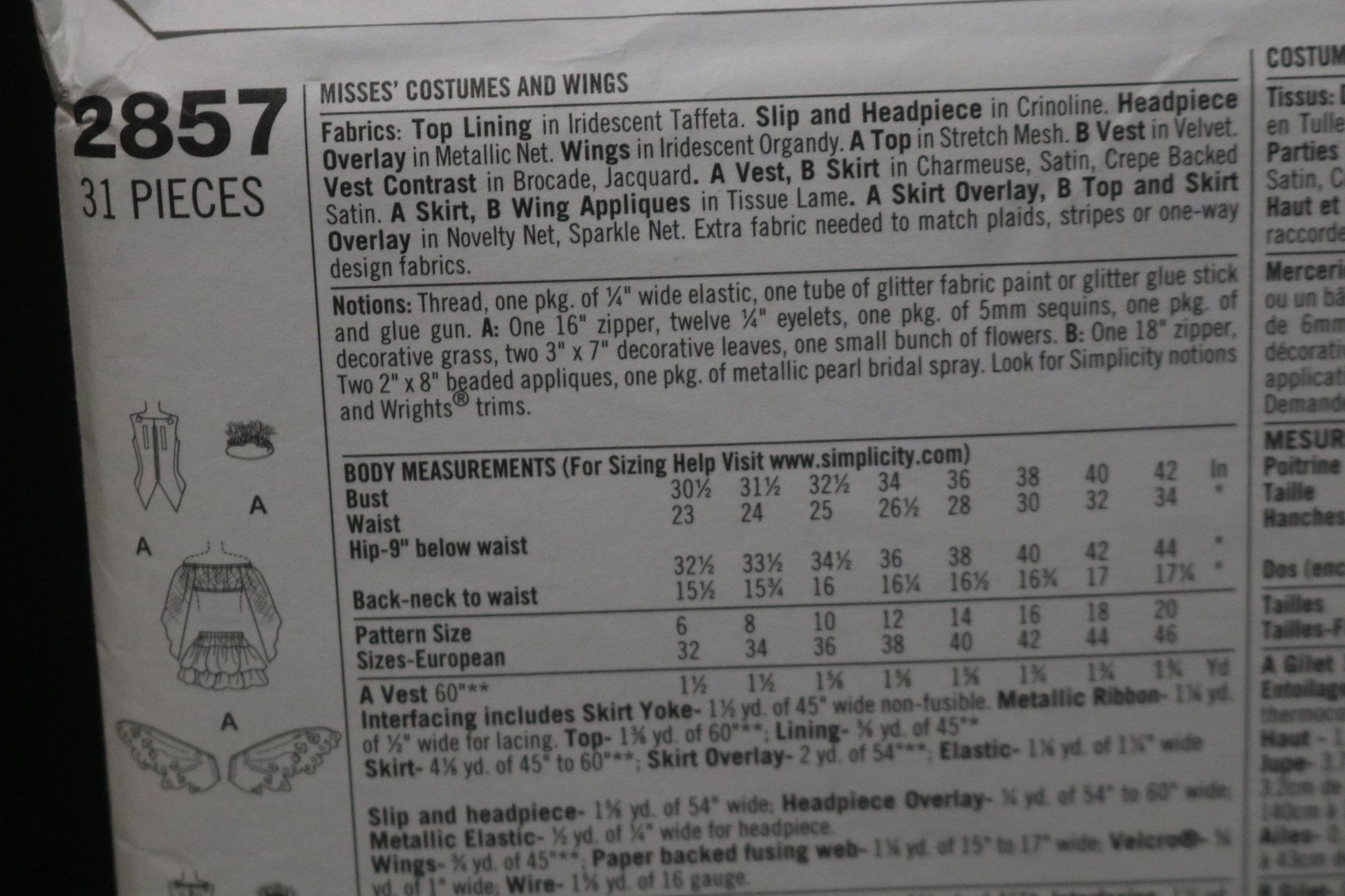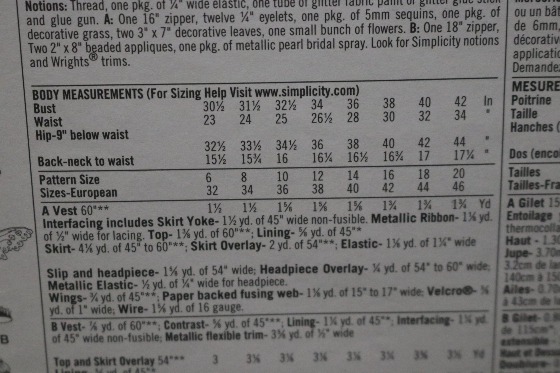 Simplicity 2857 Misses Costumes and Wings Sewing Pattern - UNCUT - Size 14 16 18 20