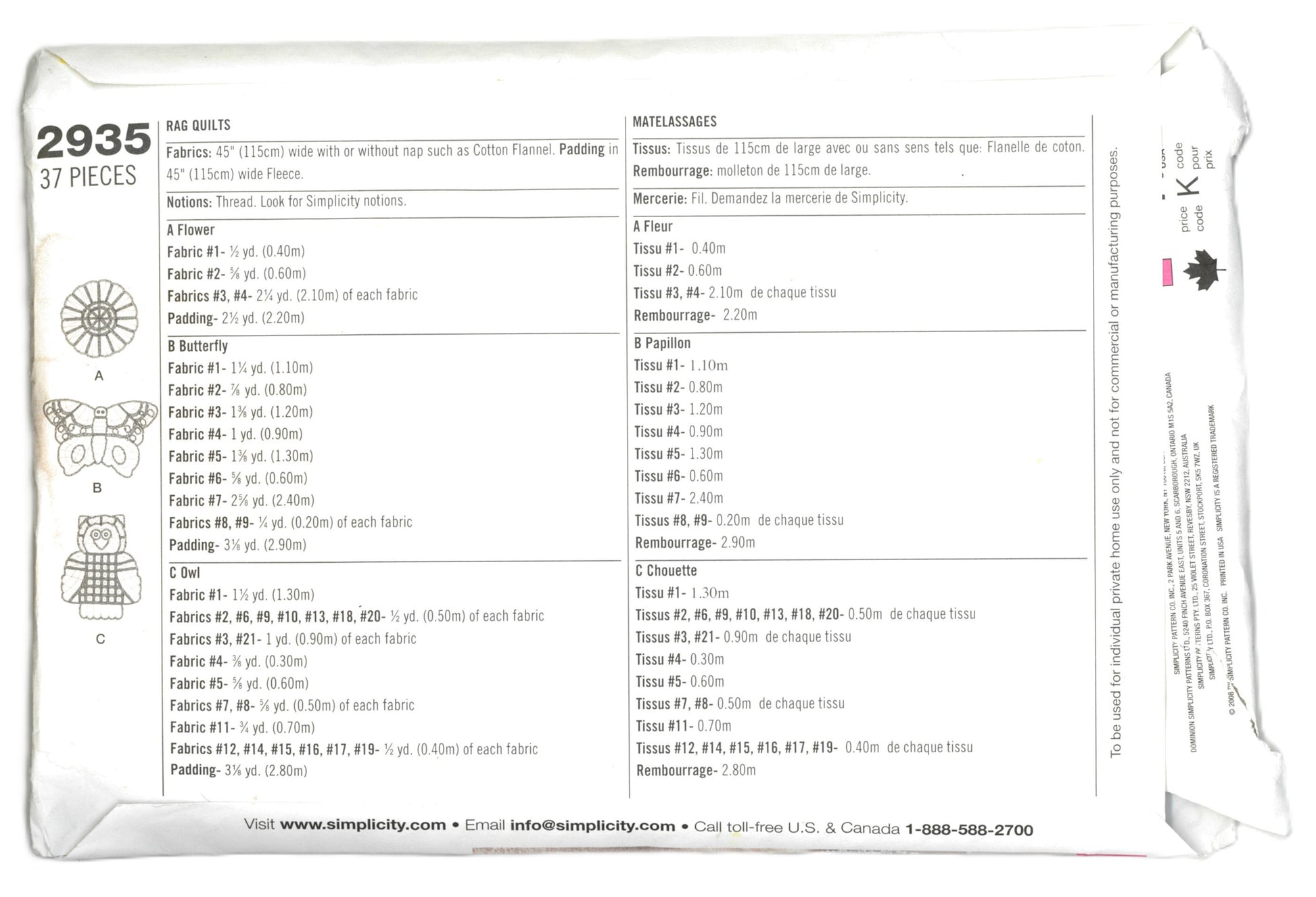 Simplicity 2935 Rag Quilts Sewing Pattern