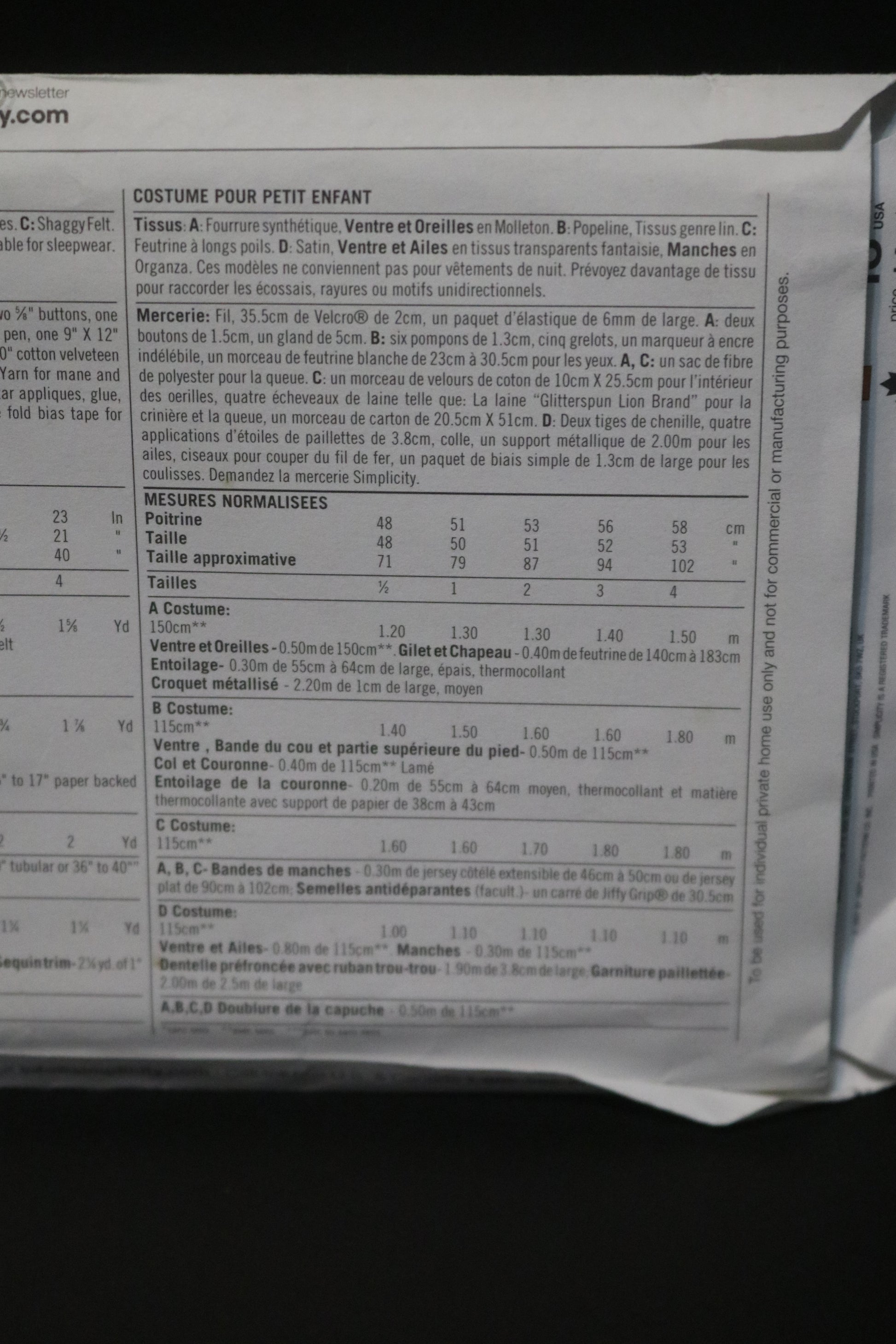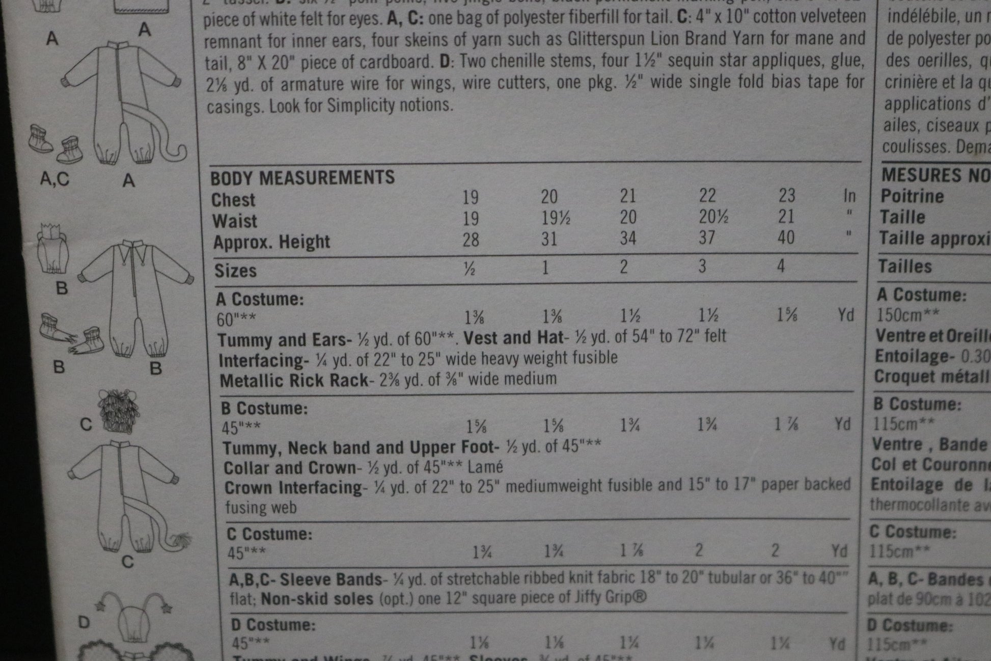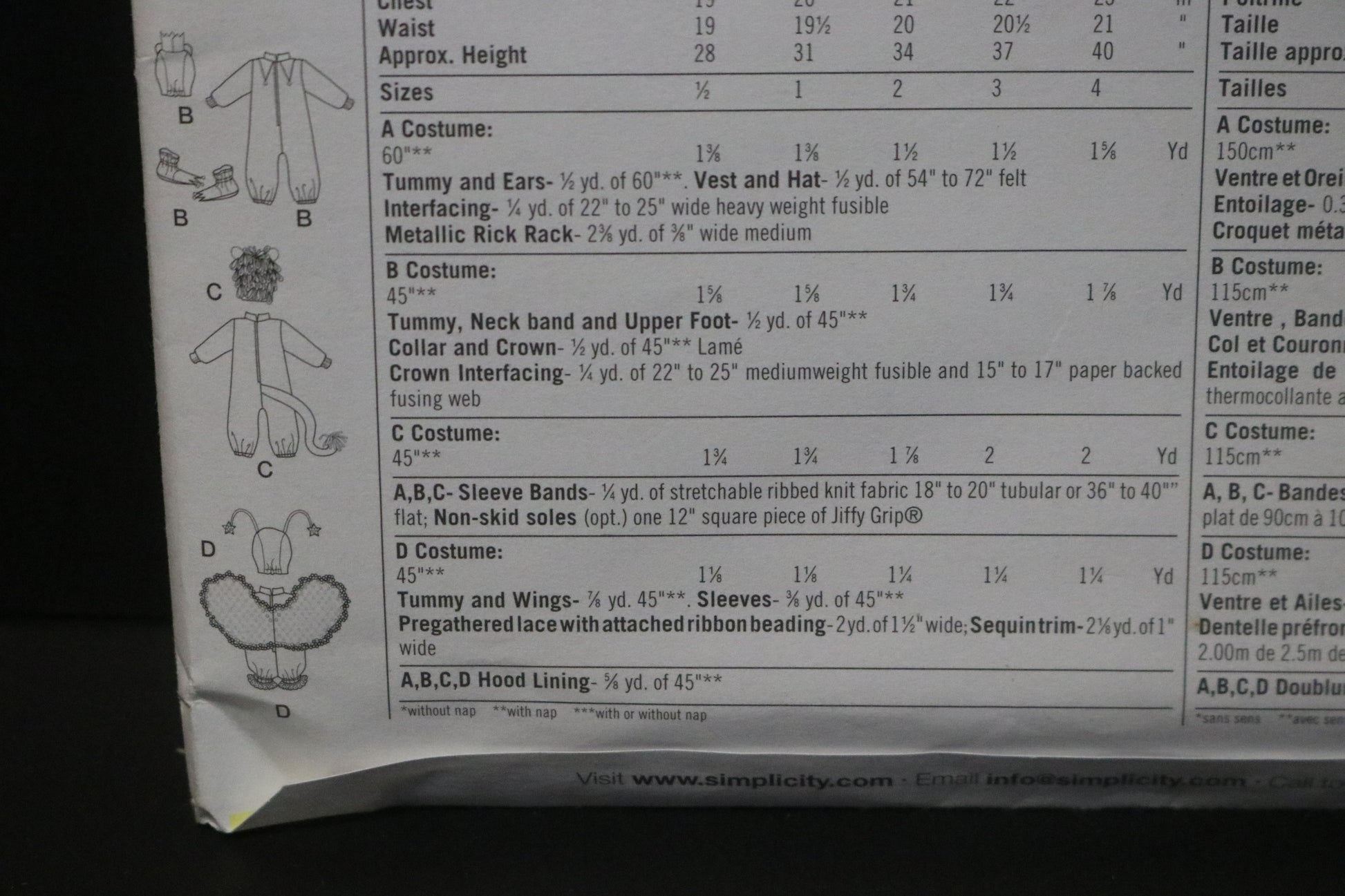 Simplicity 3594 Toddlers Monkey, Fairy, Frog, and Lion Costumes Sewing Pattern - UNCUT - Size 1/2 1 2 3 4