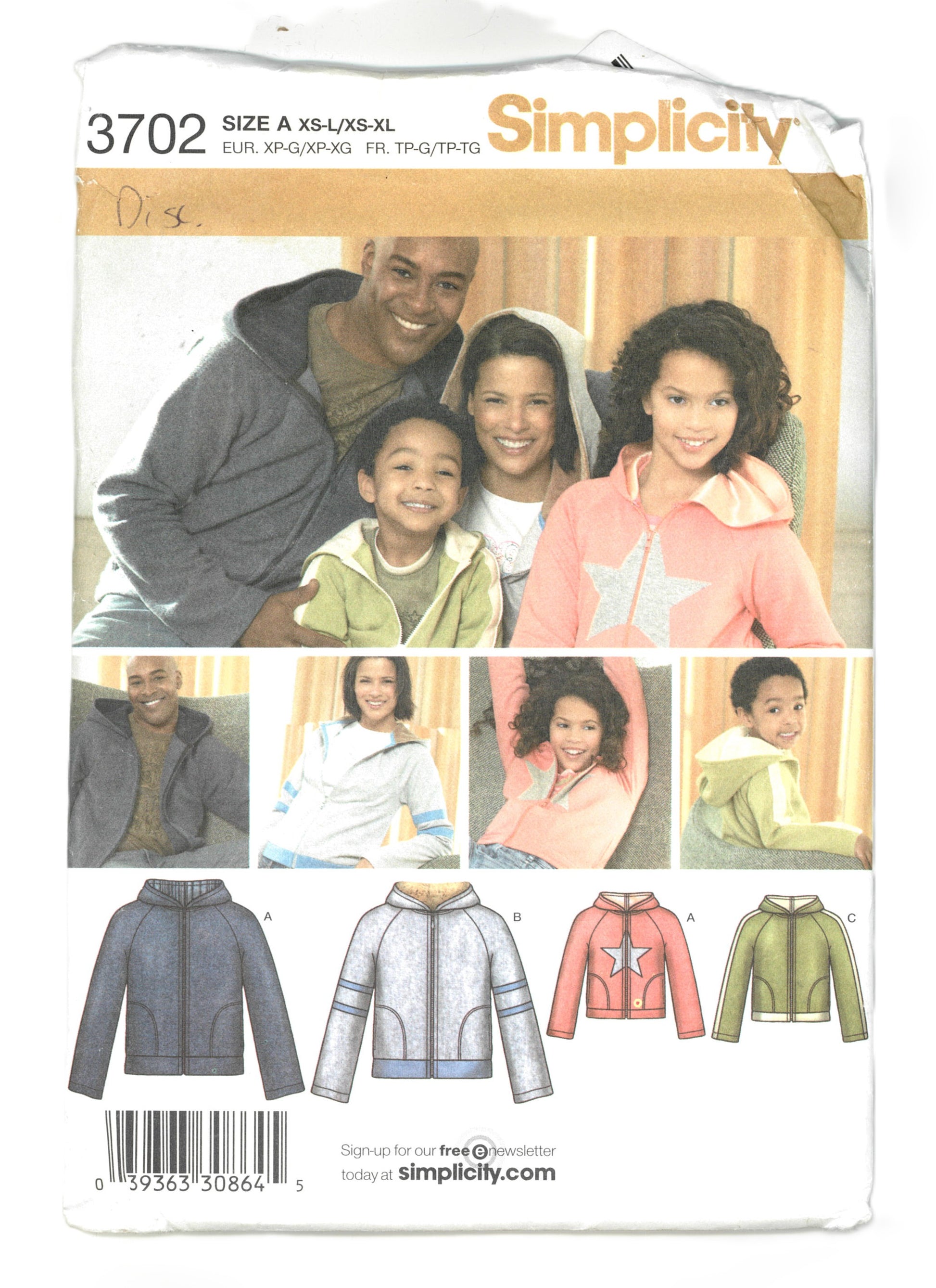 Simplicity 3702 Unisex Child's Teens and Adults Knit Hooded Sweatshirt Sewing Pattern