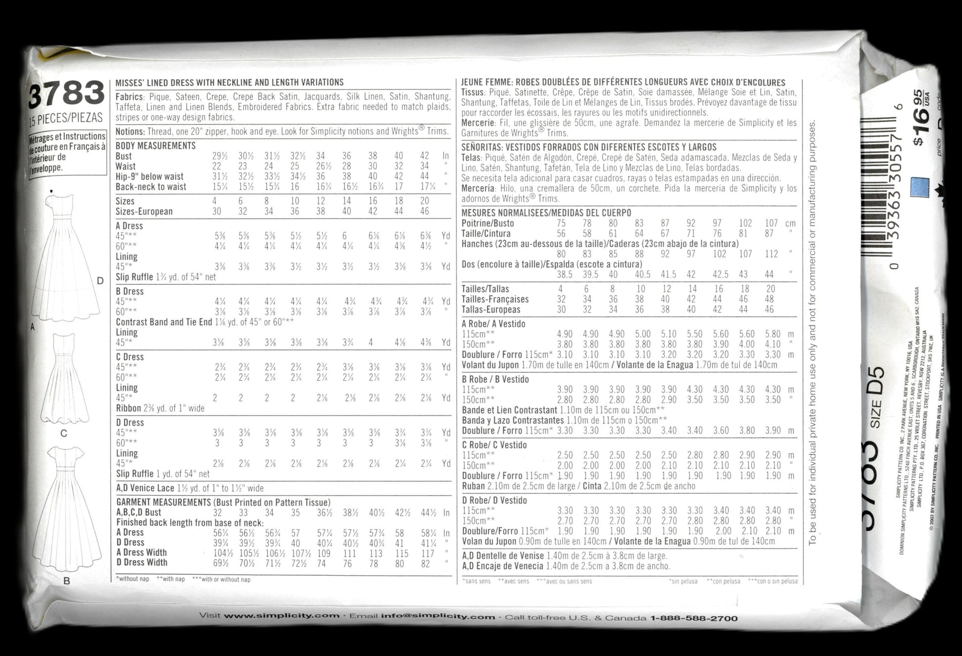 Simplicity 3783 Misses Lined Dress with Neckline and Length Variations Sewing Pattern