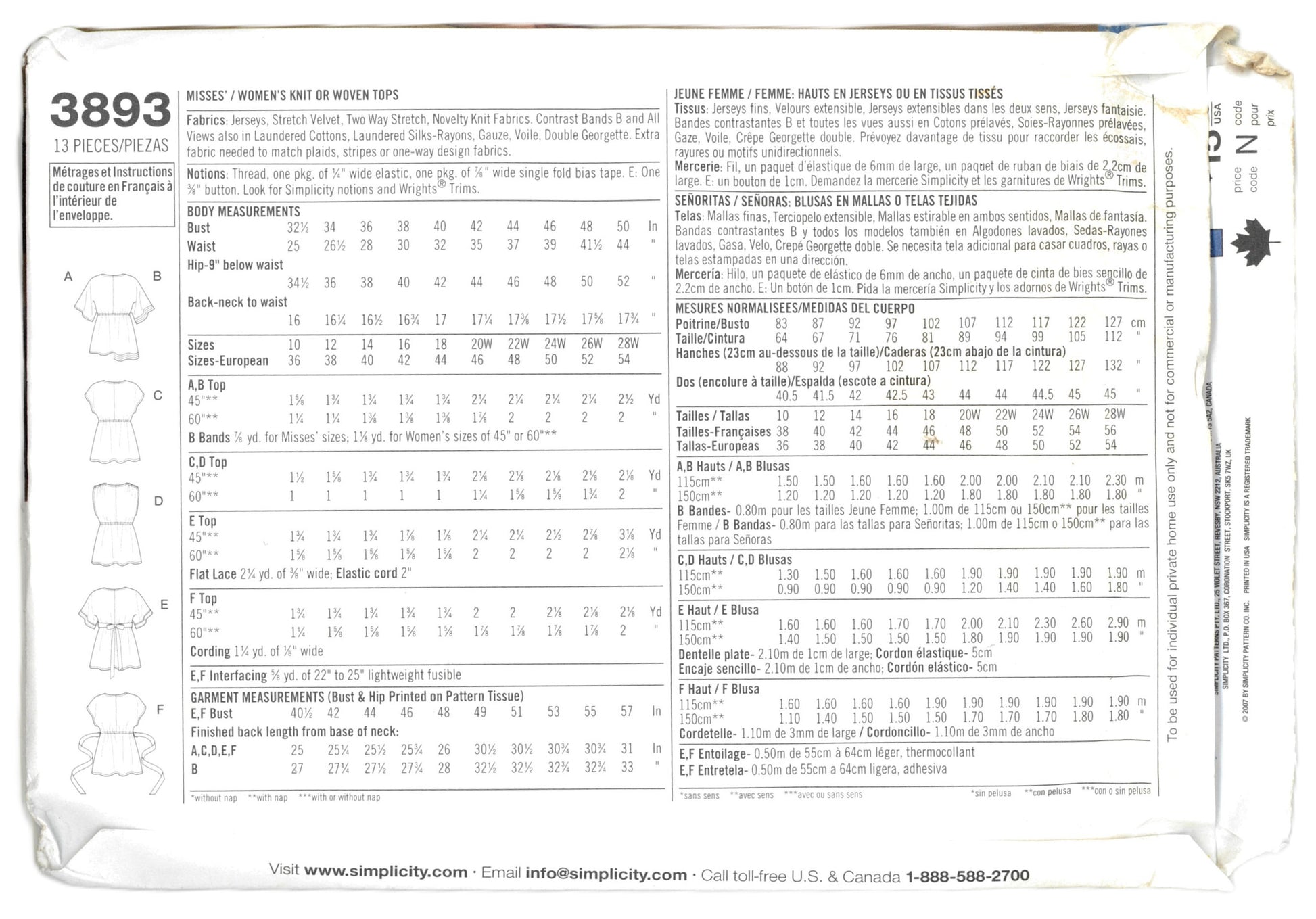 Simplicity 3893 Khaliah Ali Misses Knit or Woven Tops Sewing Pattern UNCUT Size 10 12 14 16 18