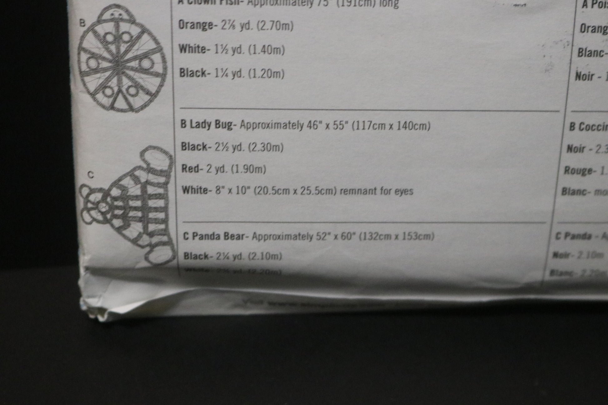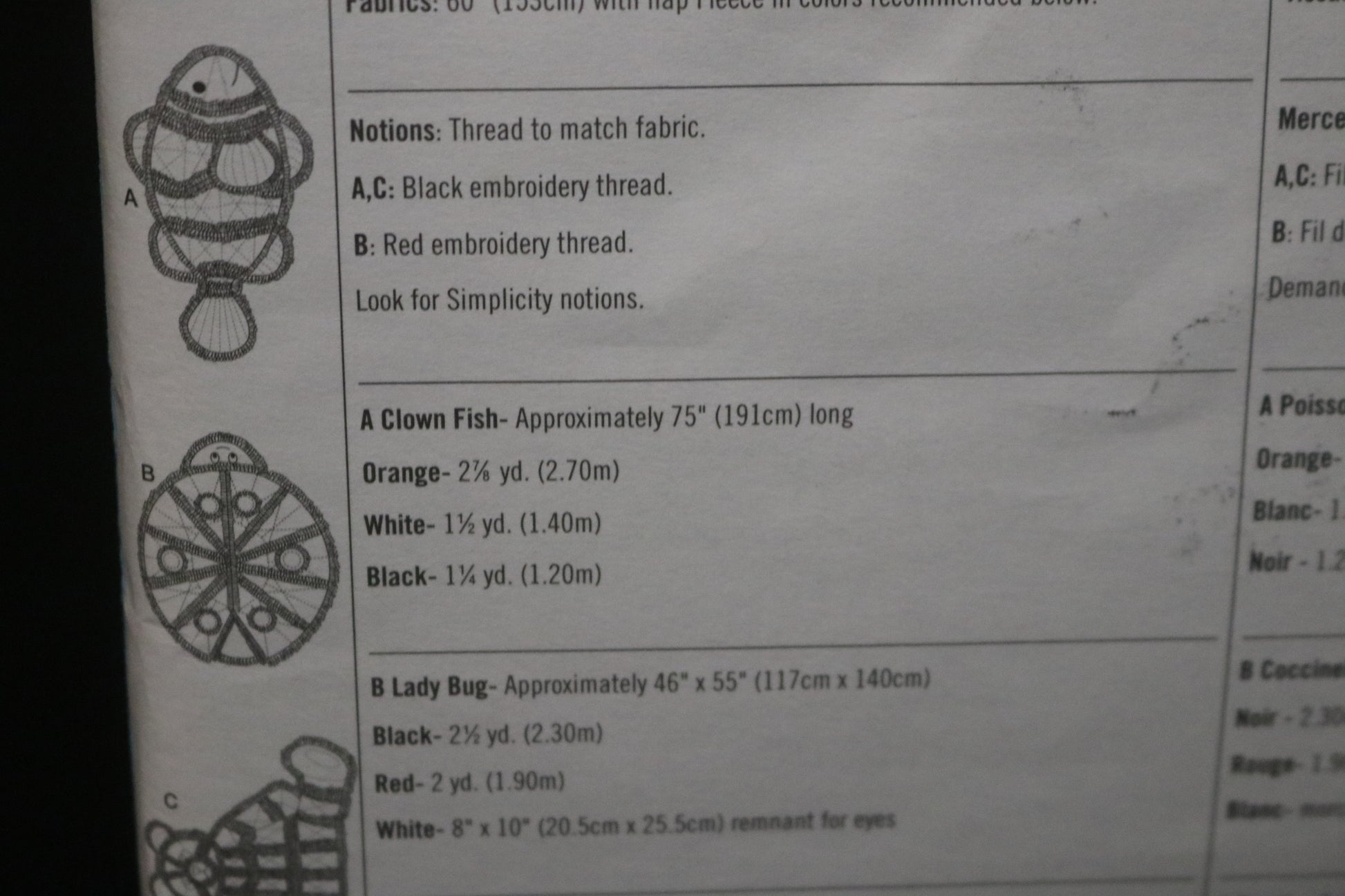 Pattern and instructions for Panda Bear, Lady Bug and Clown Fish Fleece Throw