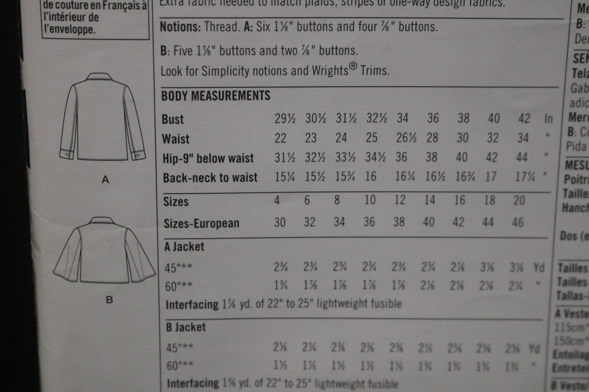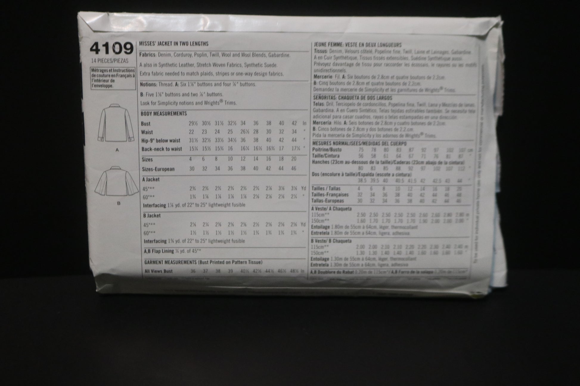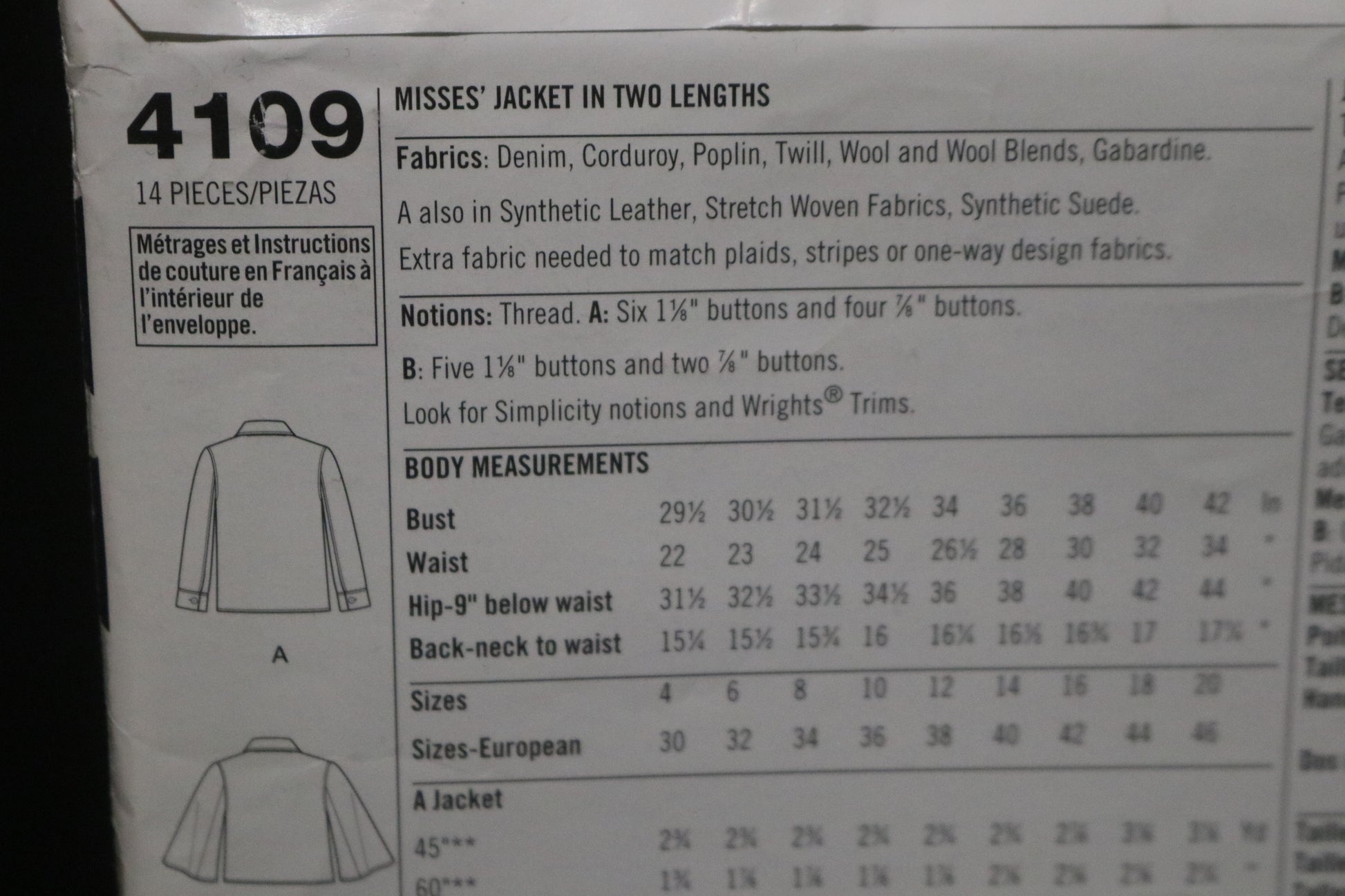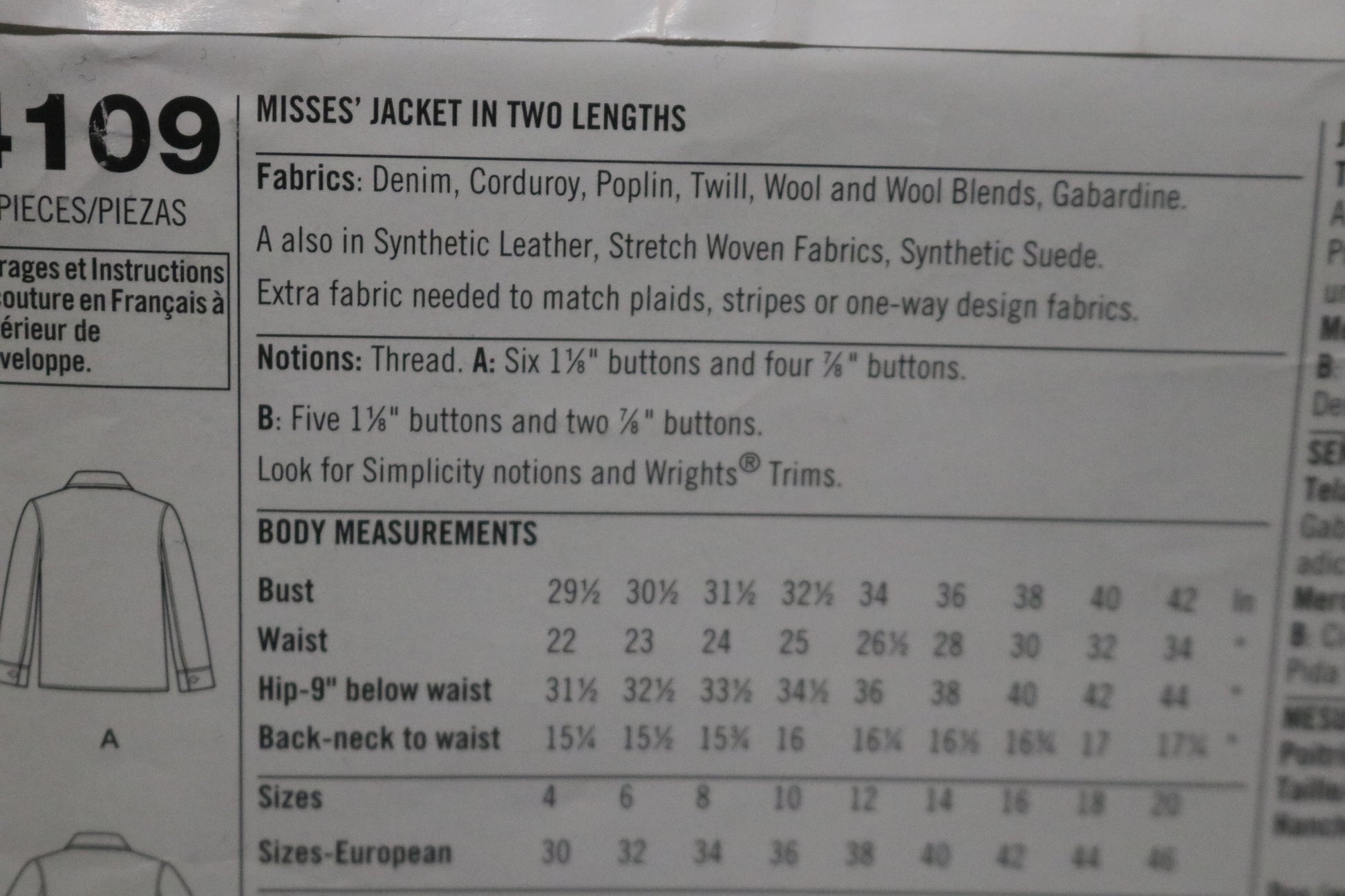 Simplicity 4109 Misses Jacket in Two Lengths Sewing Pattern