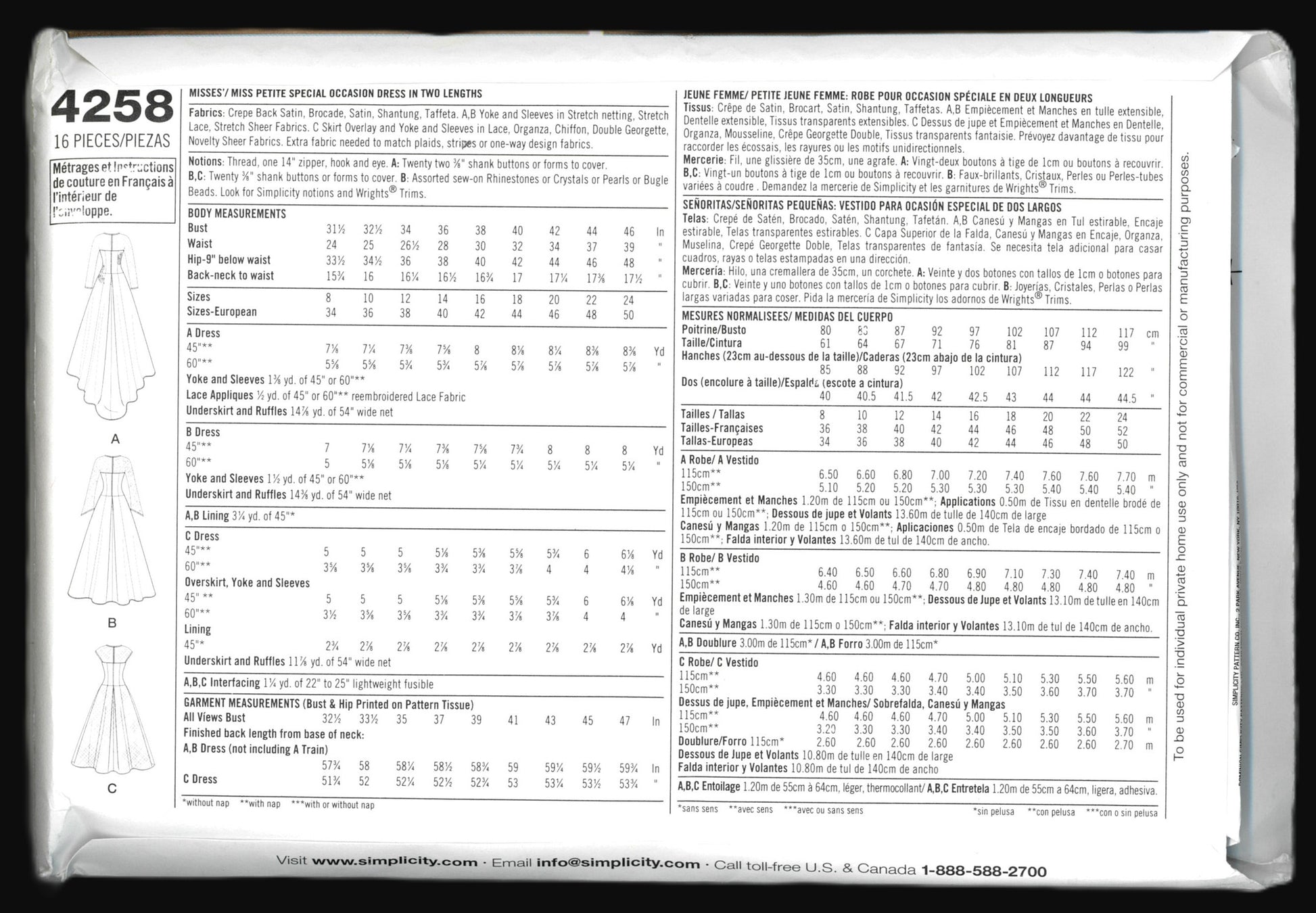 Simplicity 4258 Misses / Miss Petite pecial Occasion Dress in Two Lengths Sewing Pattern