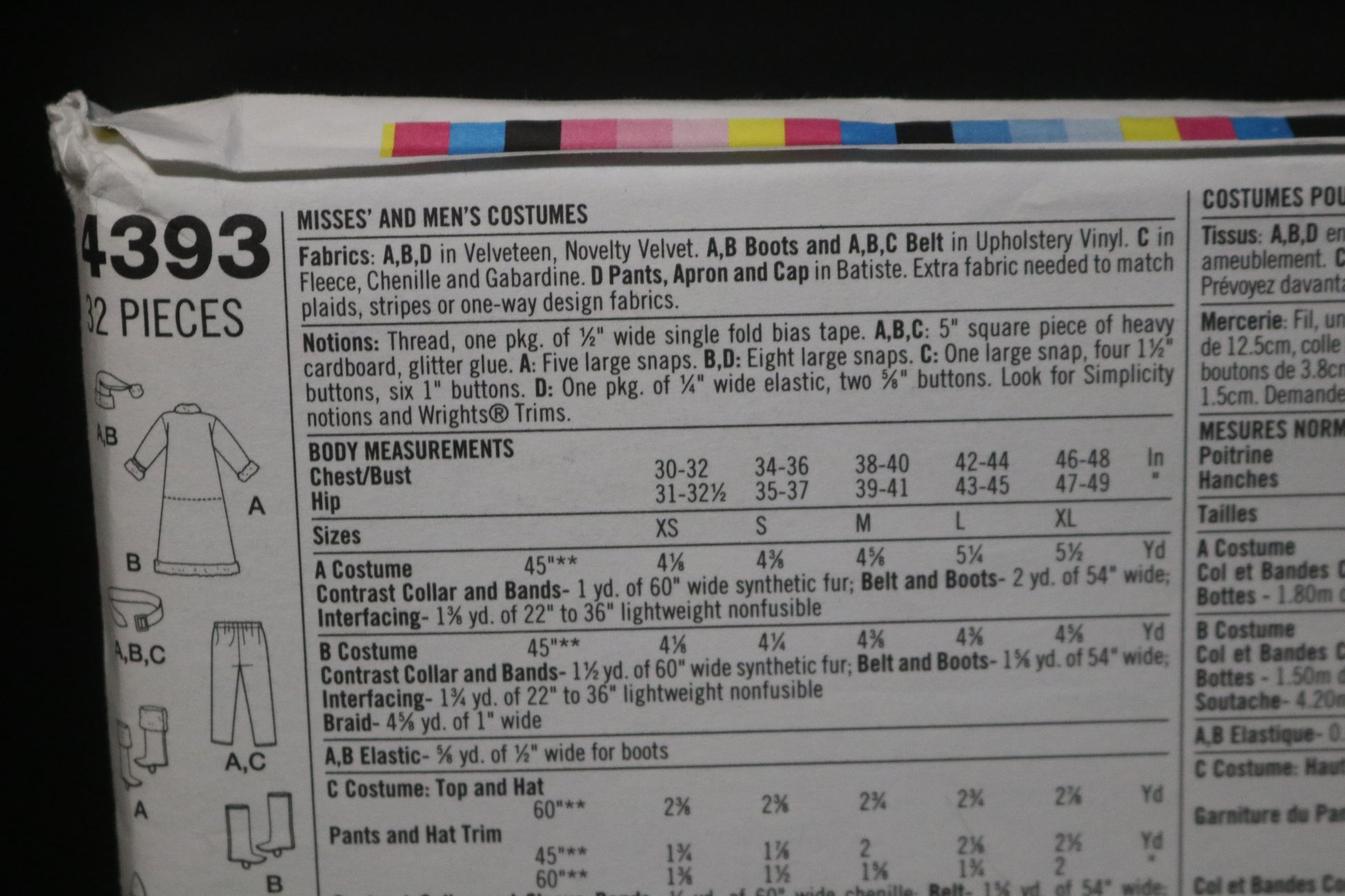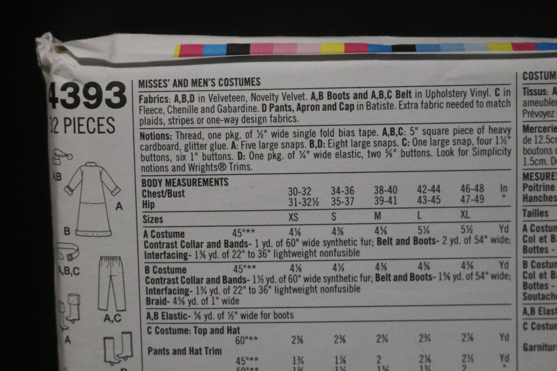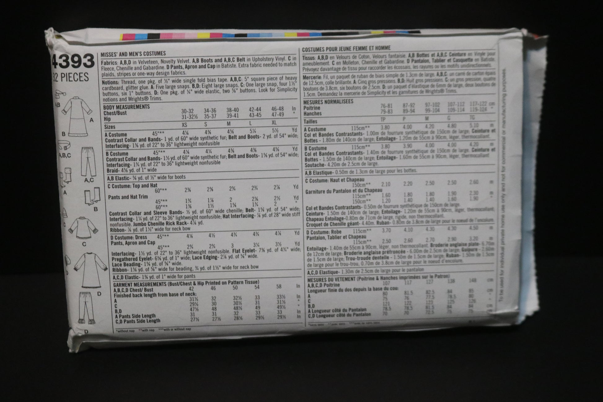 Simplicity 4393 Misses and Mens Santa,Father Christmas, Mrs CLaus and Elf Christmas Costumes Sewing Pattern - UNCUT Size L - XL