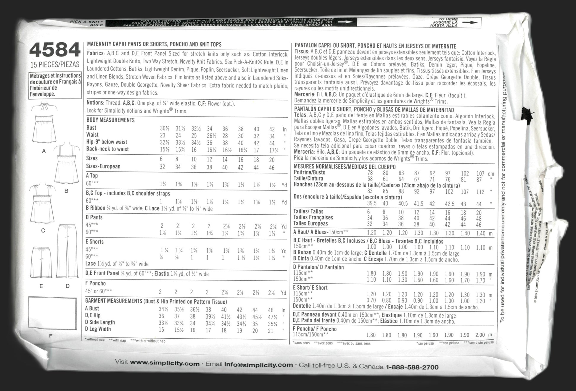 Simplicity 4584 Maternity Capri Pants or Shorts, Ponco and Knit Tops Sewing Pattern