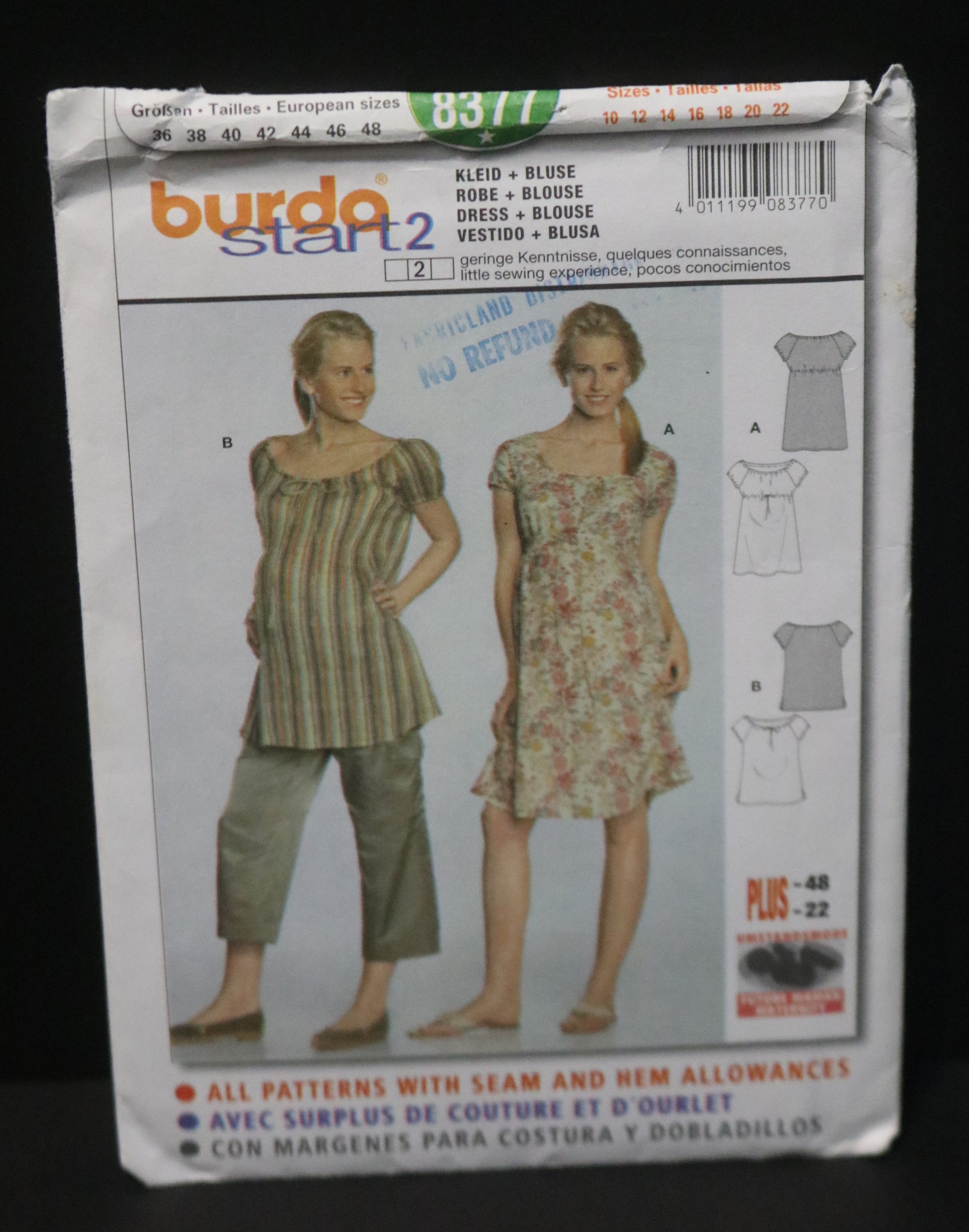 Burda 8377 Maternity Dress and Blouse Sewing Pattern UNCUT Size 10 12 14 16 18 20 22
