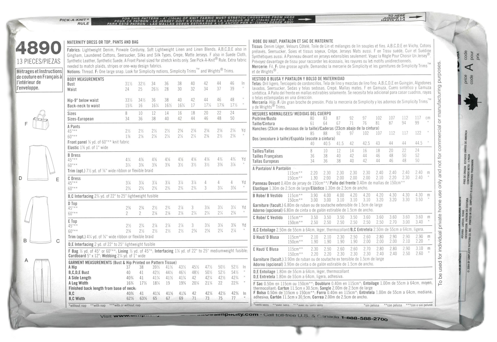Simplicity 4890 Maternity Dress or Top Pants and Bag Sewing Pattern