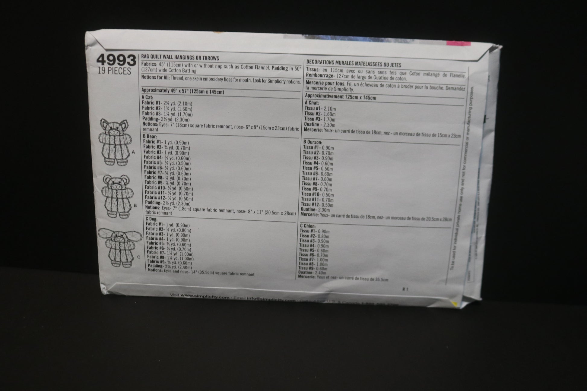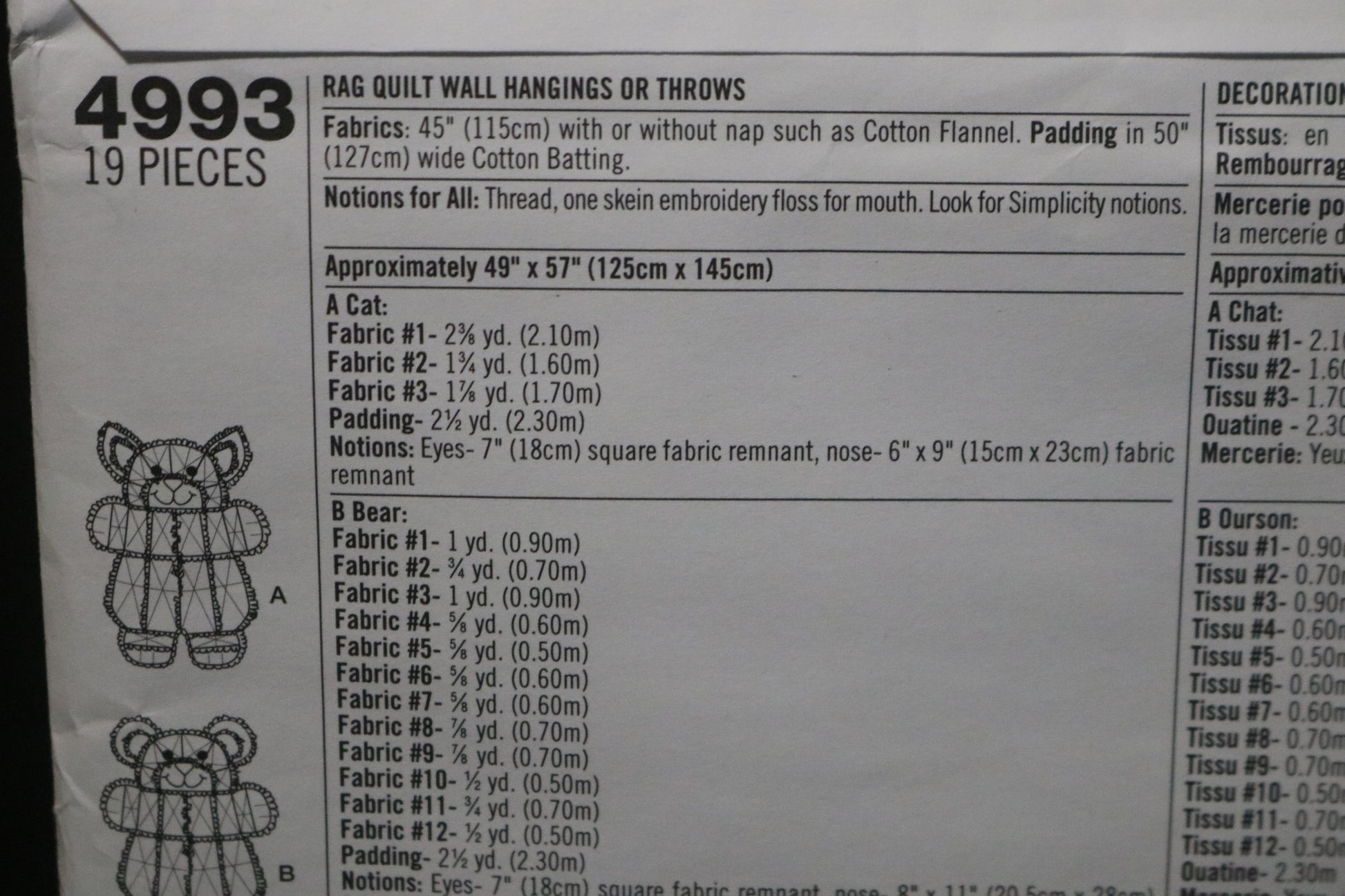 Simplicity 4993 Rag Quilt Wall Hangings or Throws Sewing Pattern