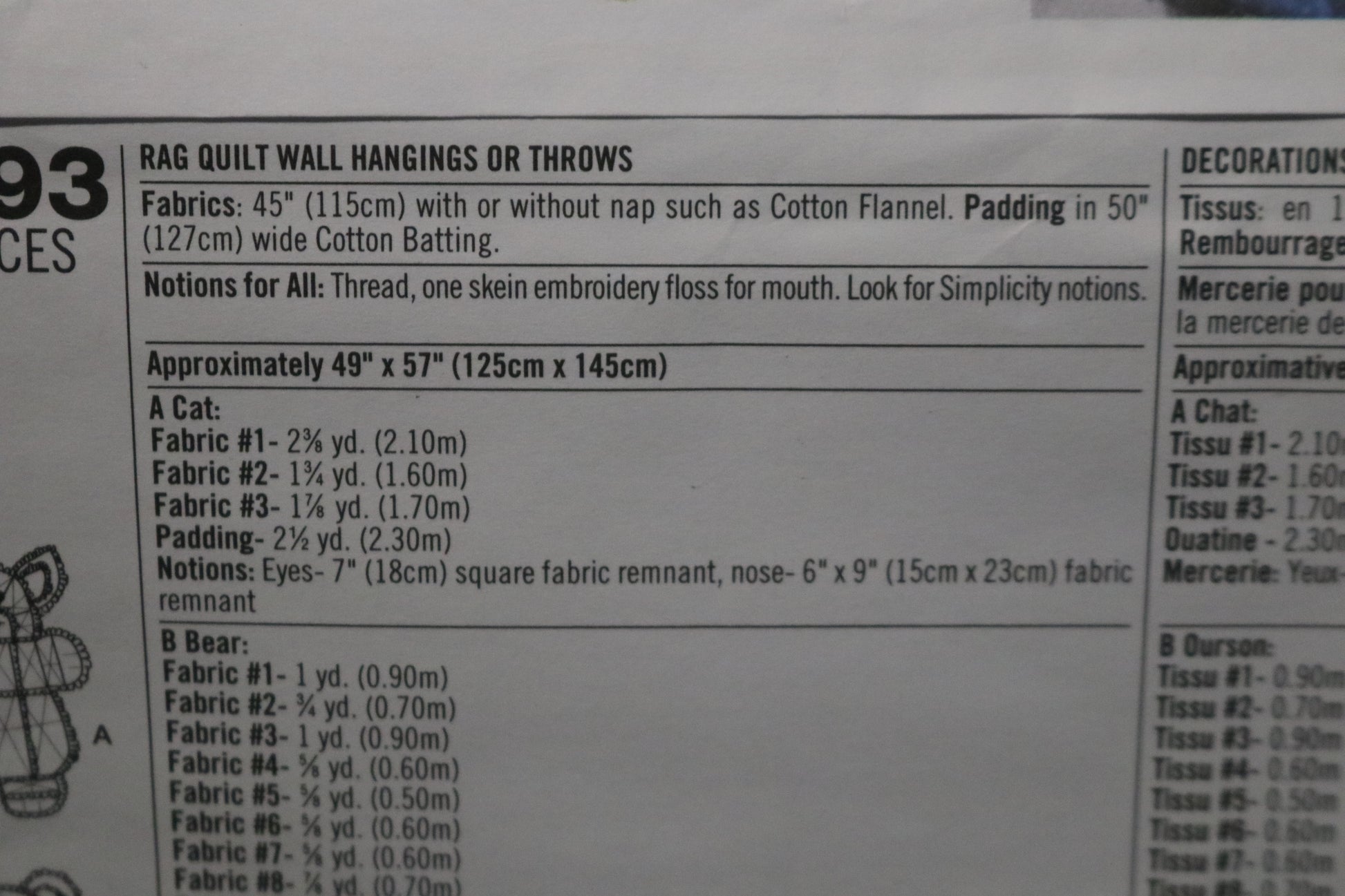 Simplicity 4993 Rag Quilt Wall Hangings or Throws Sewing Pattern UNCUT