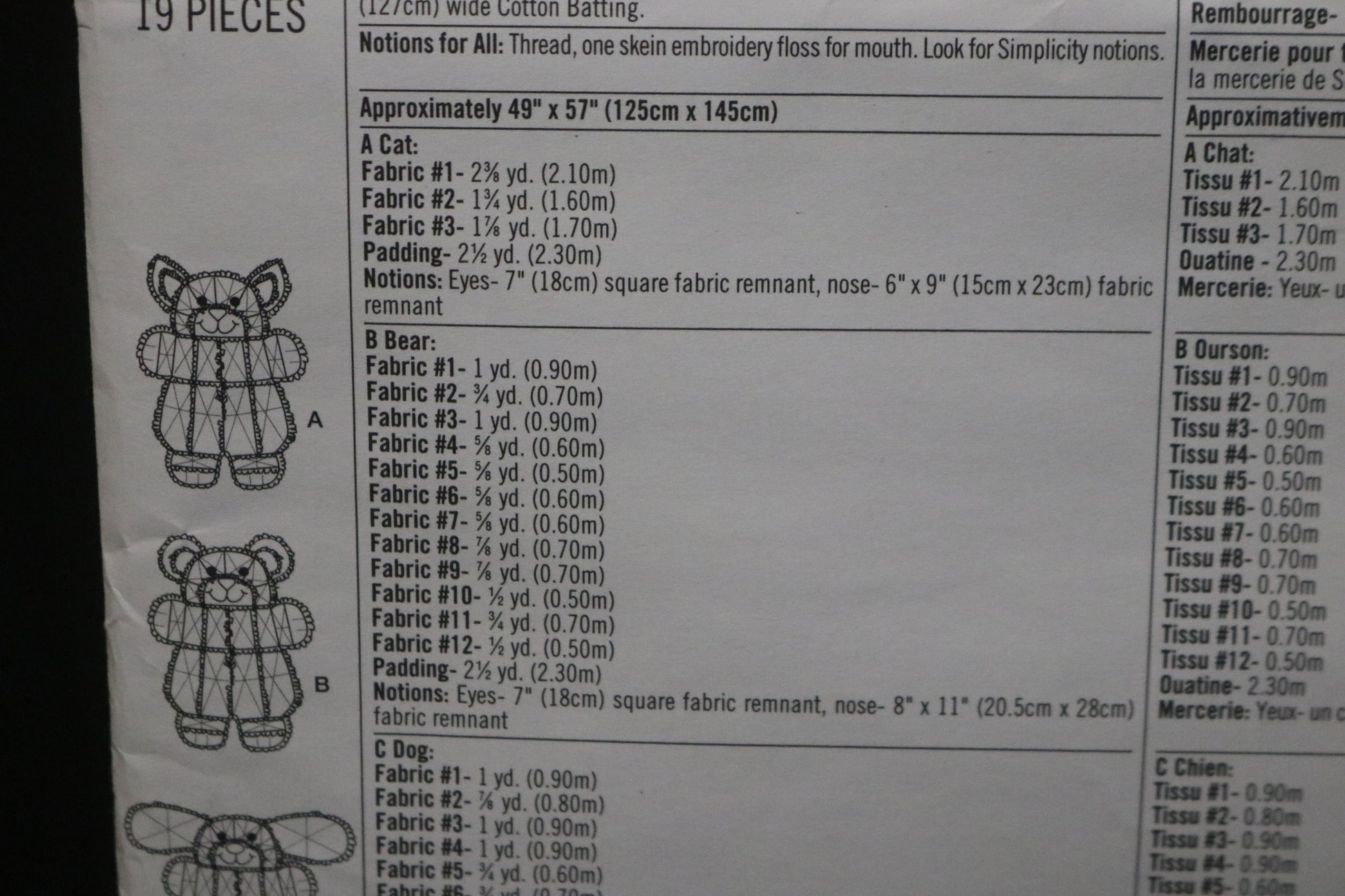 Pattern and instructions for Cat, Bear or Dog Rag Quilt.