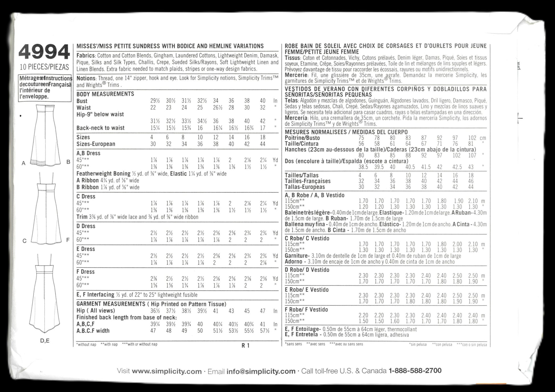 Simplicity 4994 Misses / Miss Petite Sundress with bodice and hemline variations Sewing Pattern UNCUT Size 12 14 16 18