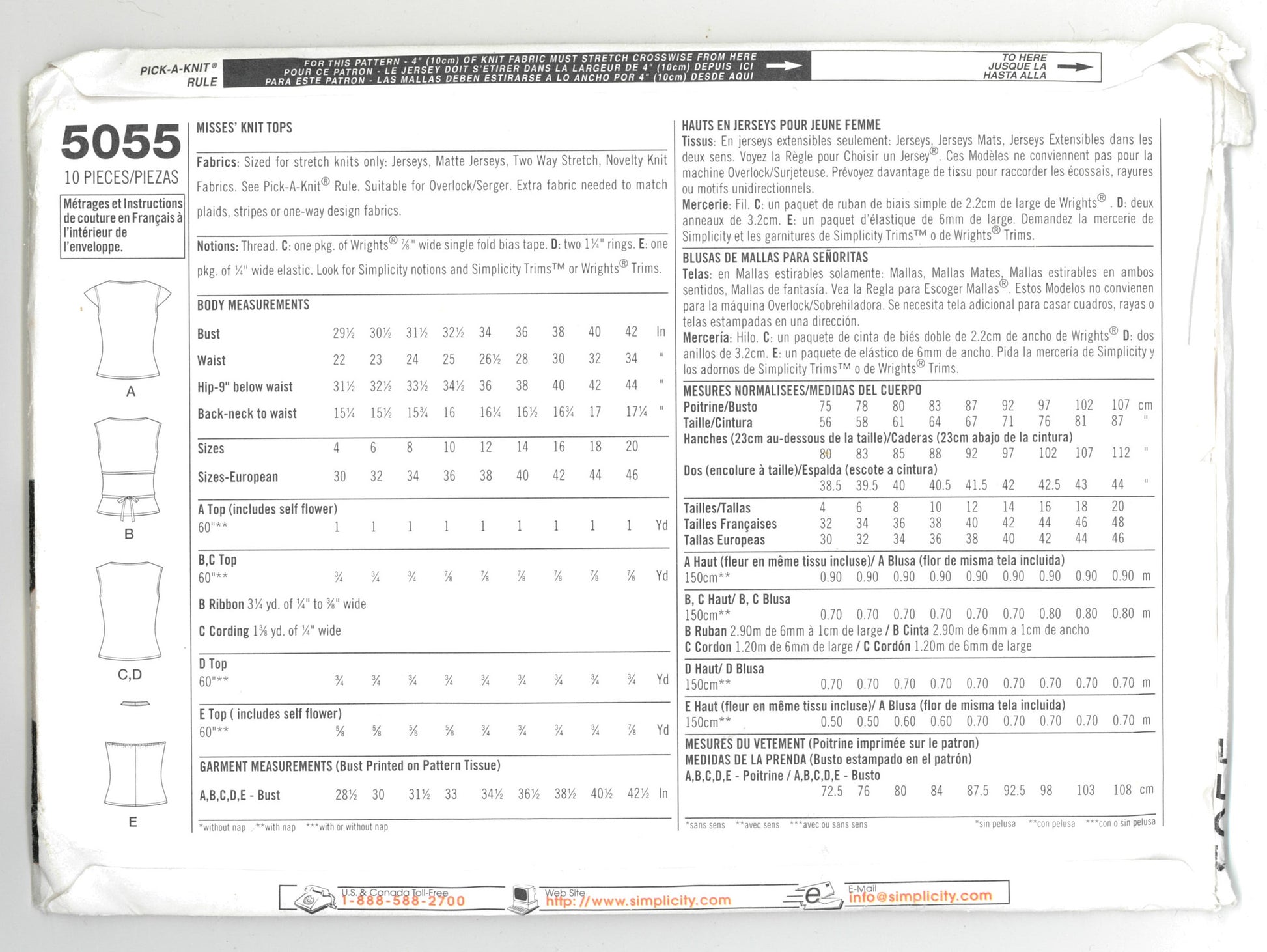 Simplicity 5055 Misses Knit Tops Sewing Pattern