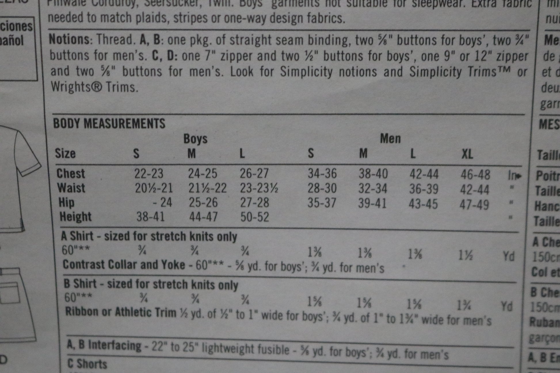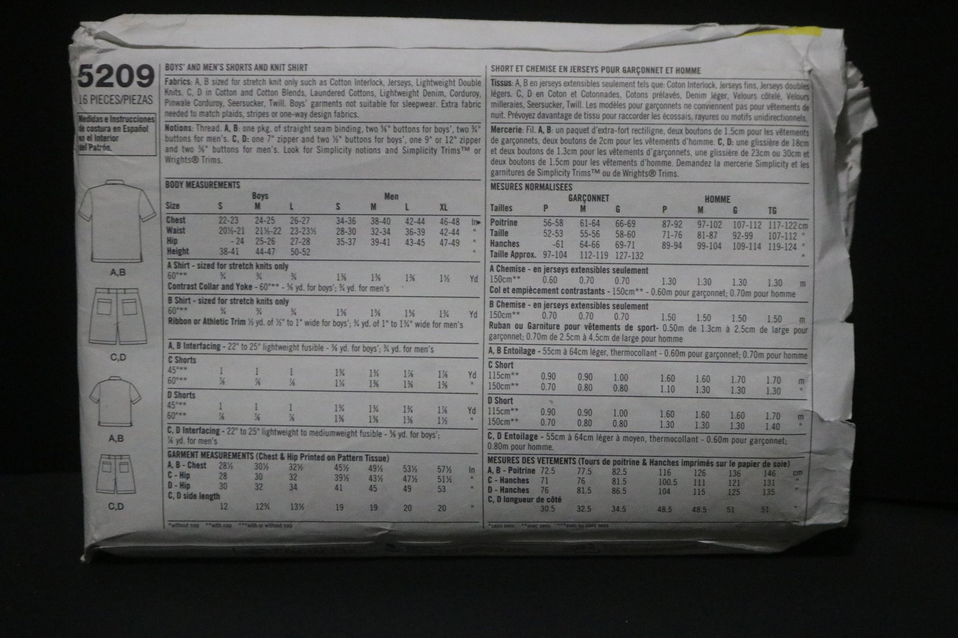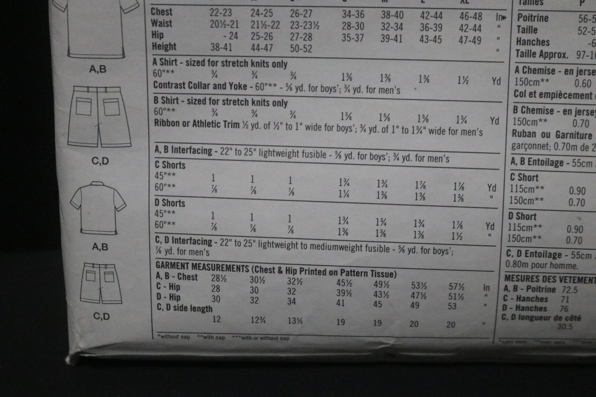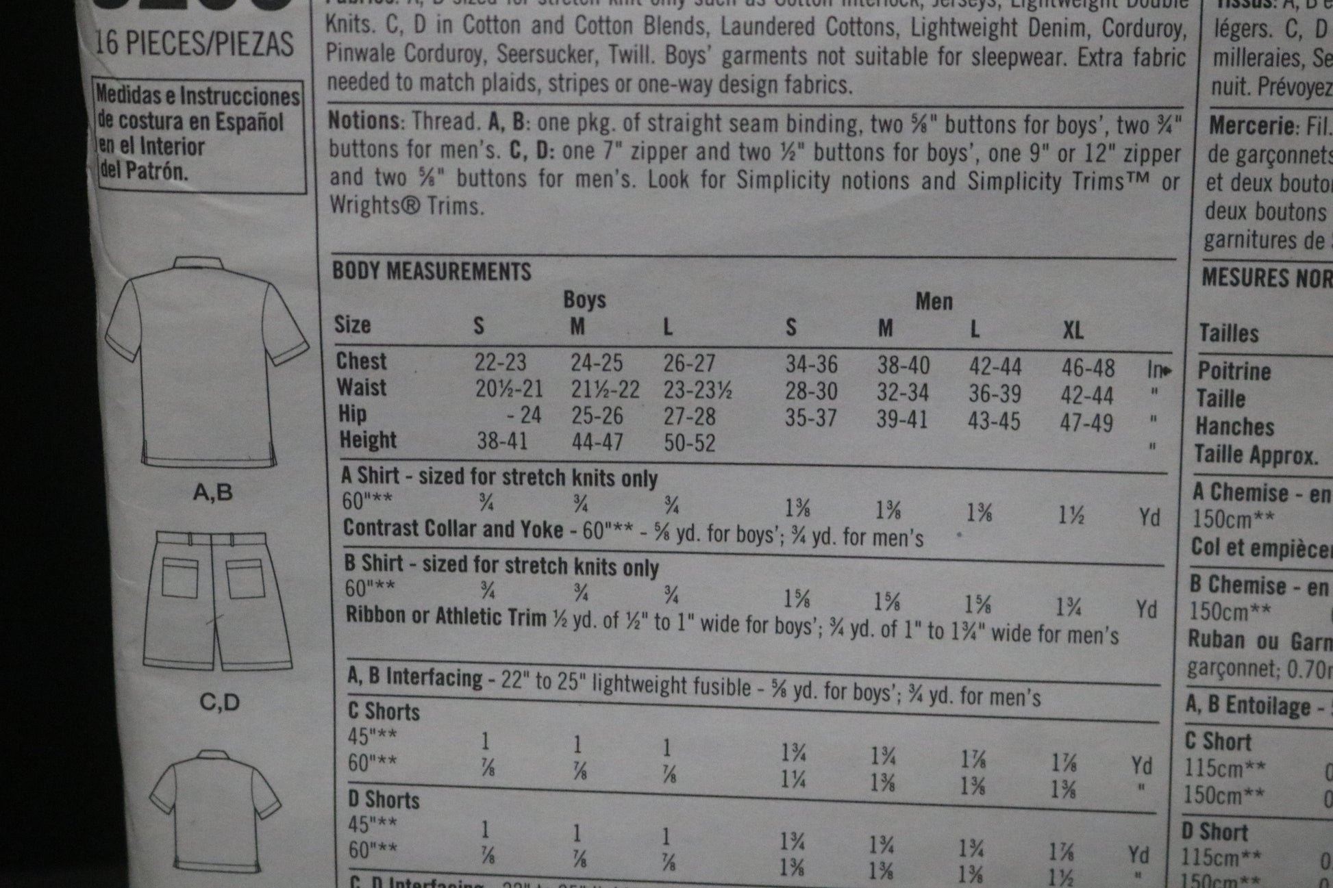 Simplicity 5209 Boys and Men's Shorts and Knit Shirt Sewing Pattern UNCUT Boys Size S M L Mens Size S M L XL