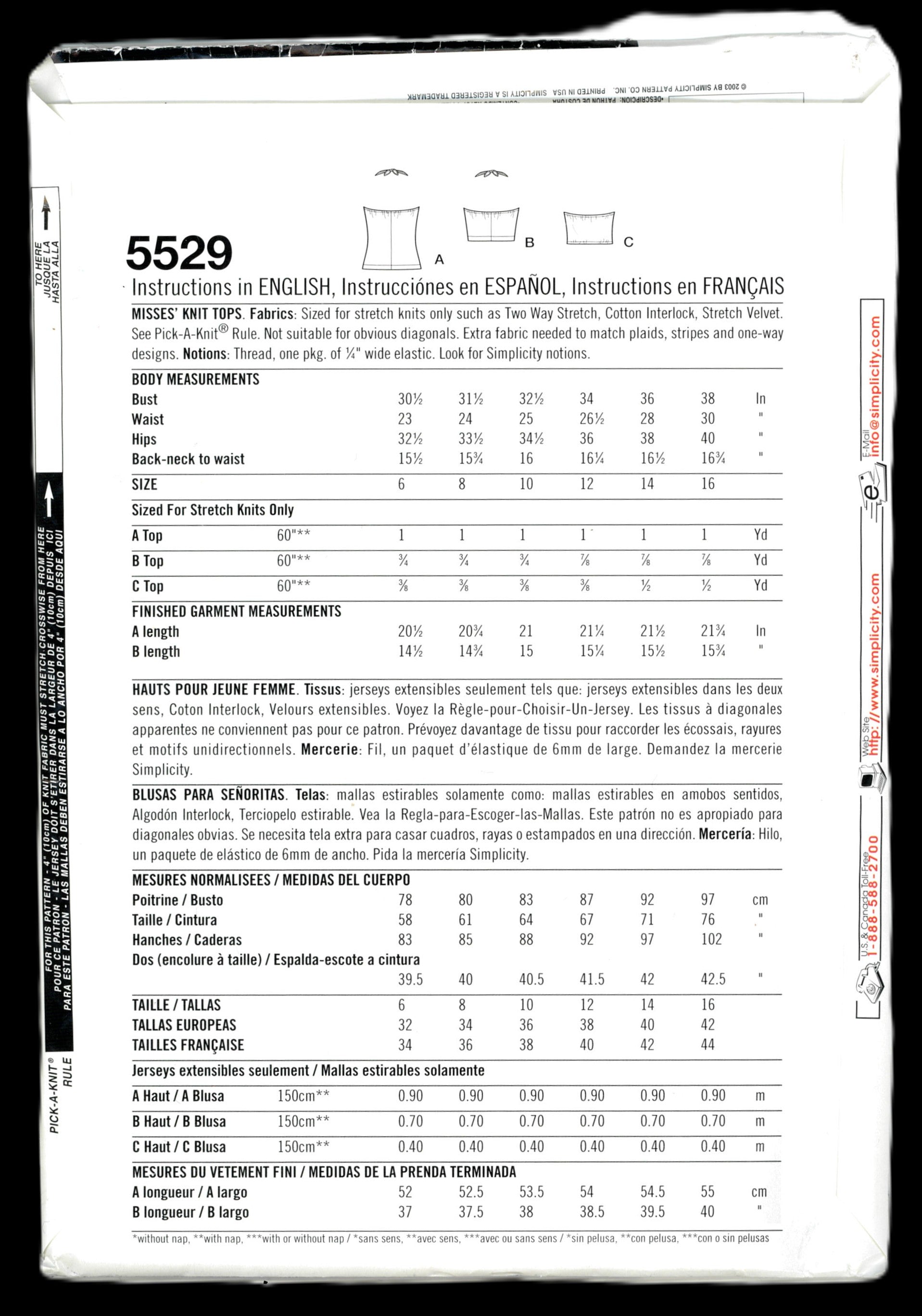 Simplicity 5529 Misses Knit Tops Sewing Pattern