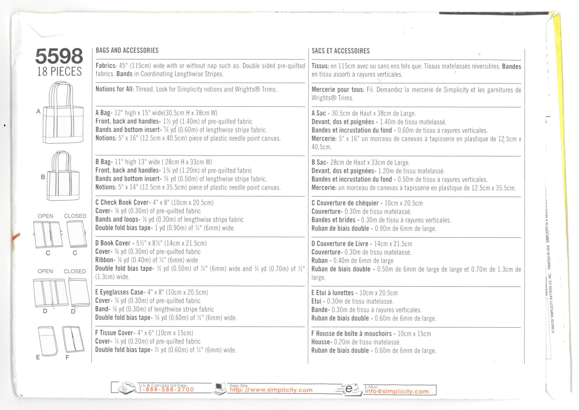 Simplicity 5598 Bags and Accessories Sewing Pattern