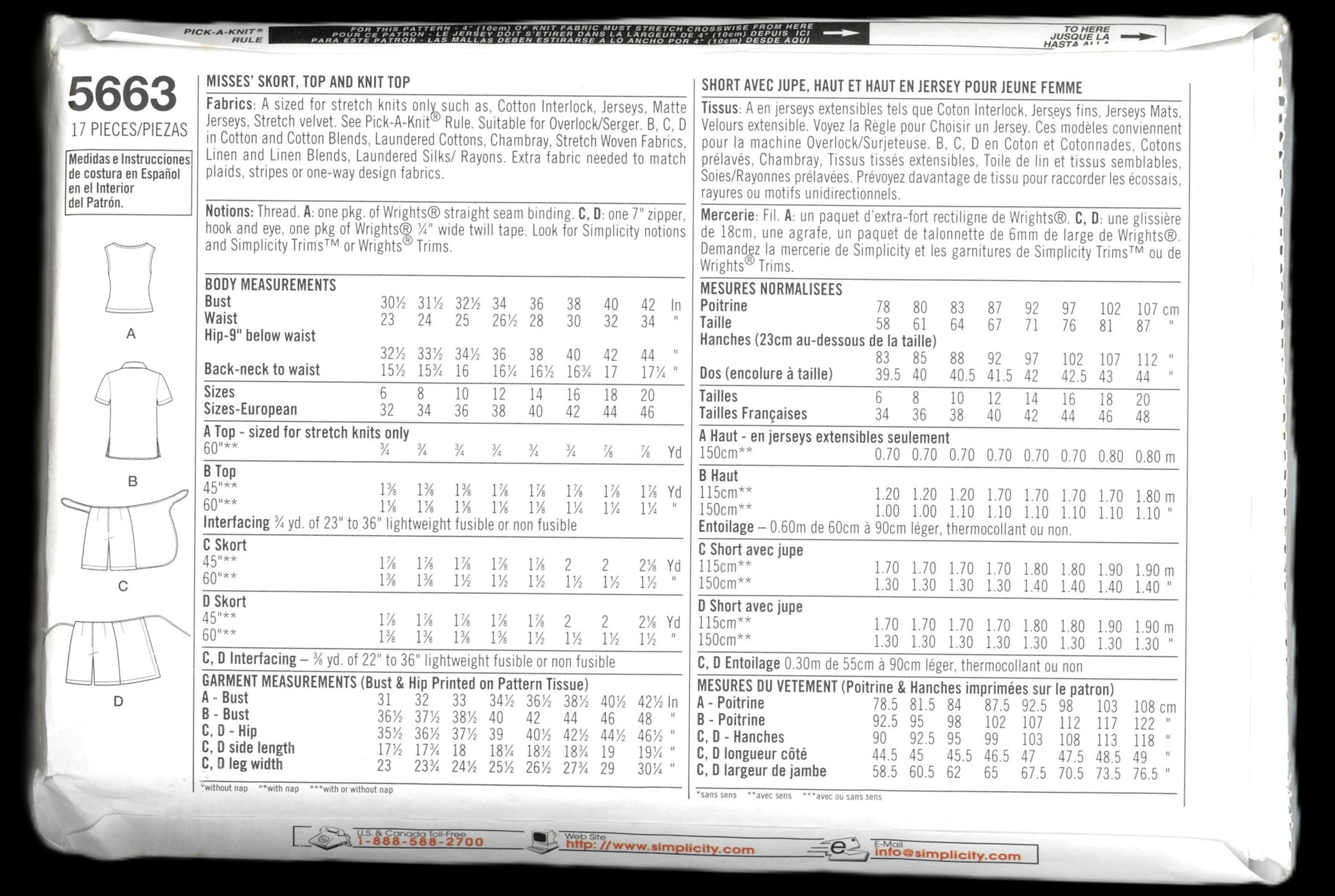 Simplicity 5663 Misses Skort Top and Knit Top Sewing Pattern