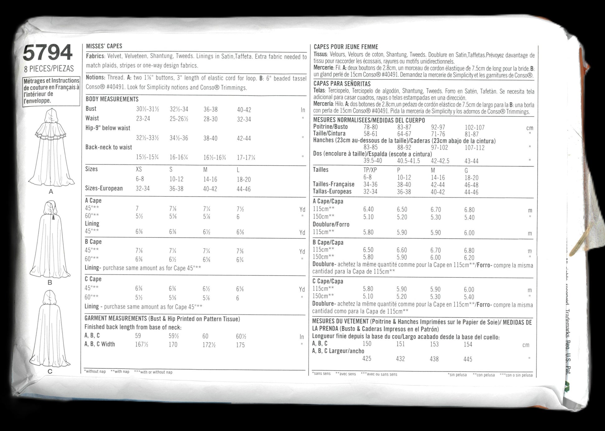Simplicity 5794 Teresa Nordstrom Misses Capes Sewing Pattern