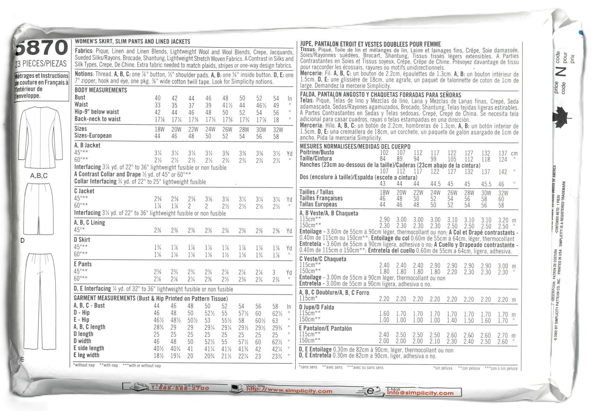 Simplicity 5870 Women's Skirt, Slim Pants and Lined Jacket Sewing Pattern